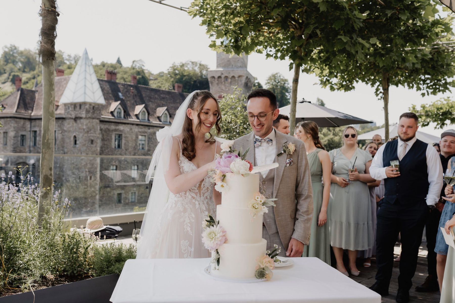 Eine stilvolle Sommerhochzeit im Schloss an der Eisenstrasse in Waidhofen an der Ybbs: romantische Trauung im Freien, zarte Blumendekoration, ein lichtdurchfluteter Festsaal und viele liebevolle Details. Vom emotionalen Ja-Wort bis zur elegant gedeckten Tafel – ein unvergesslicher Tag voller Leichtigkeit, Persönlichkeit und Schlossflair.