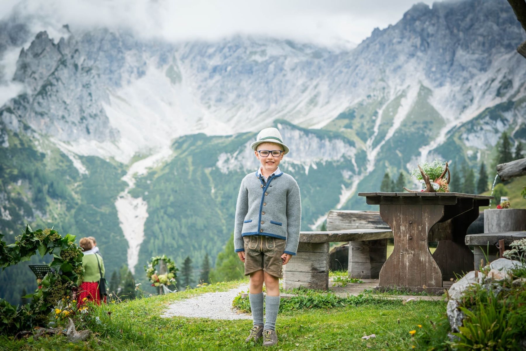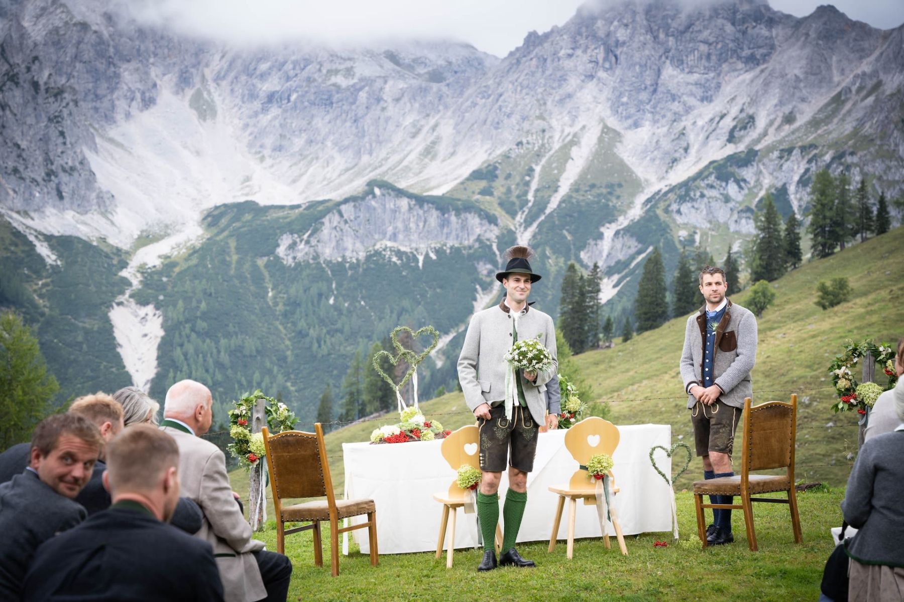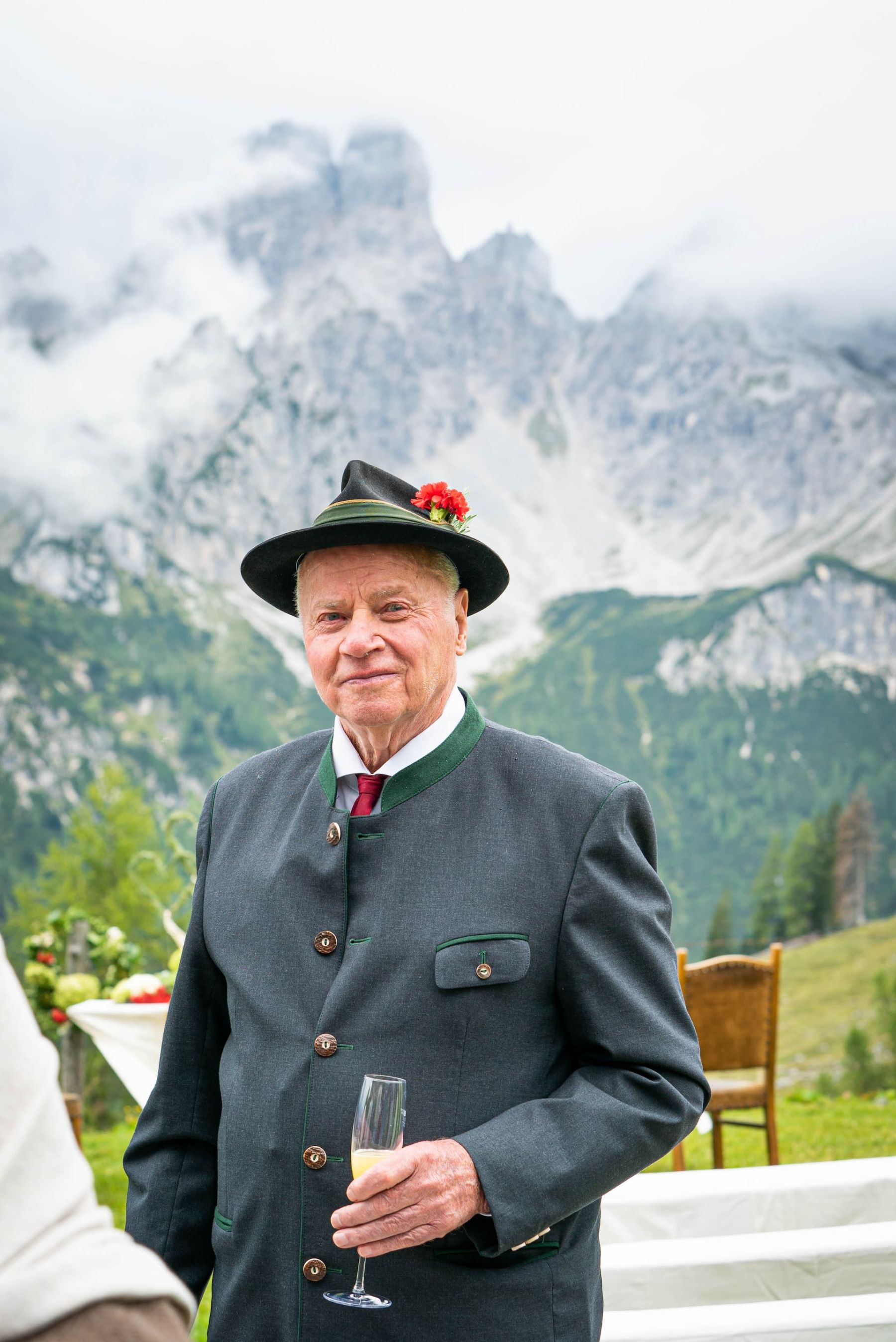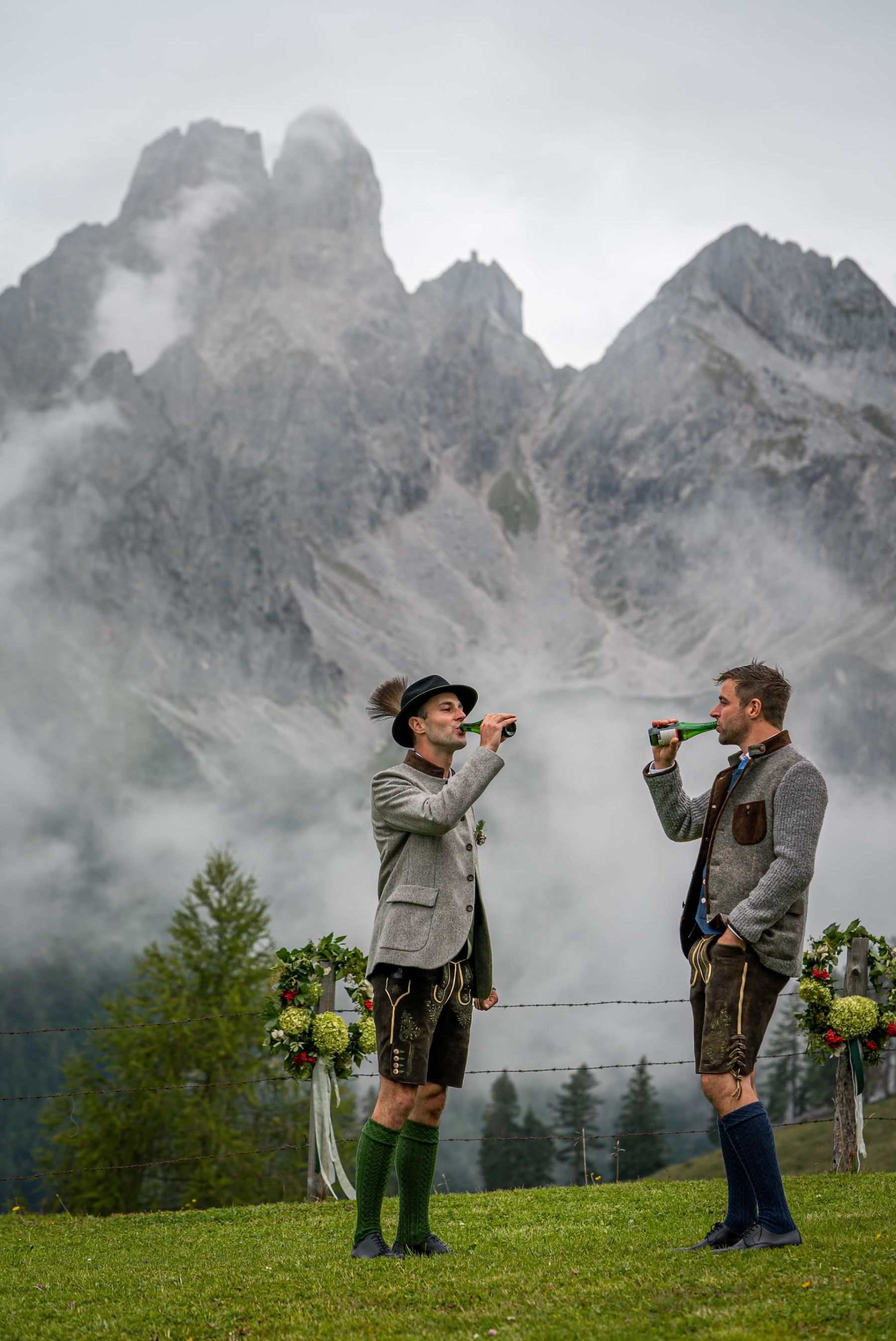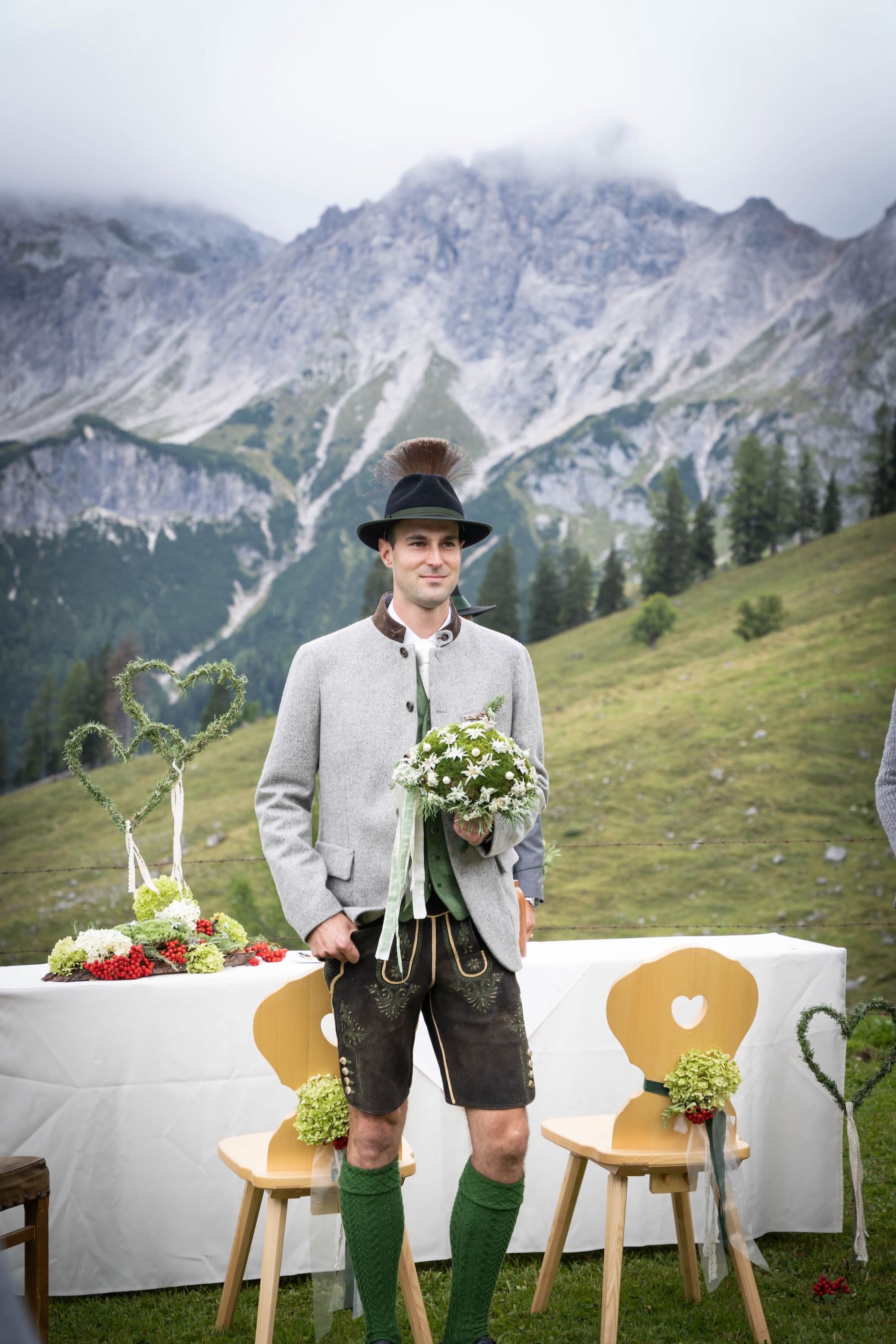 Das Shooting auf unserer Alm spiegelte die tiefe Verbundenheit zur Heimat und den liebevollen Charme einer klassischen Hochzeit wider. In festlicher Tracht – Mieder und Lederhose – strahlte das Brautpaar mit der prachtvollen Hochzeitsgesellschaft um die Wette. Die imposante Bergkulisse und das urige Ambiente der Löckenwaldhütte verliehen dem Tag eine einzigartige Atmosphäre voller Geborgenheit, Freude und authentischer Alpenromantik.