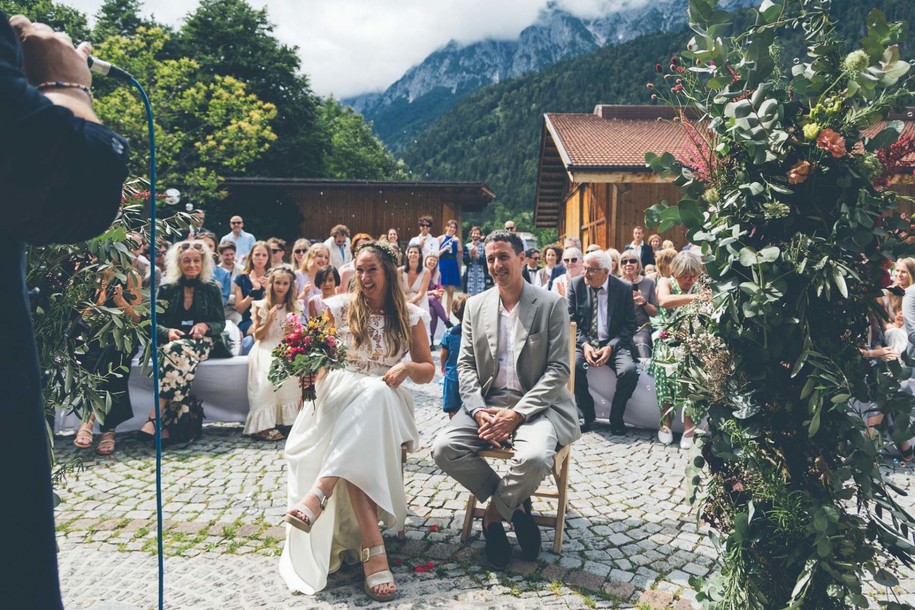 Die freie Trauung leitete ein enger Freund – persönlich, humorvoll, voller Herz. Lachen und Tränen wechselten sich ab, während die norwegischen und österreichischen Gäste Schulter an Schulter saßen.