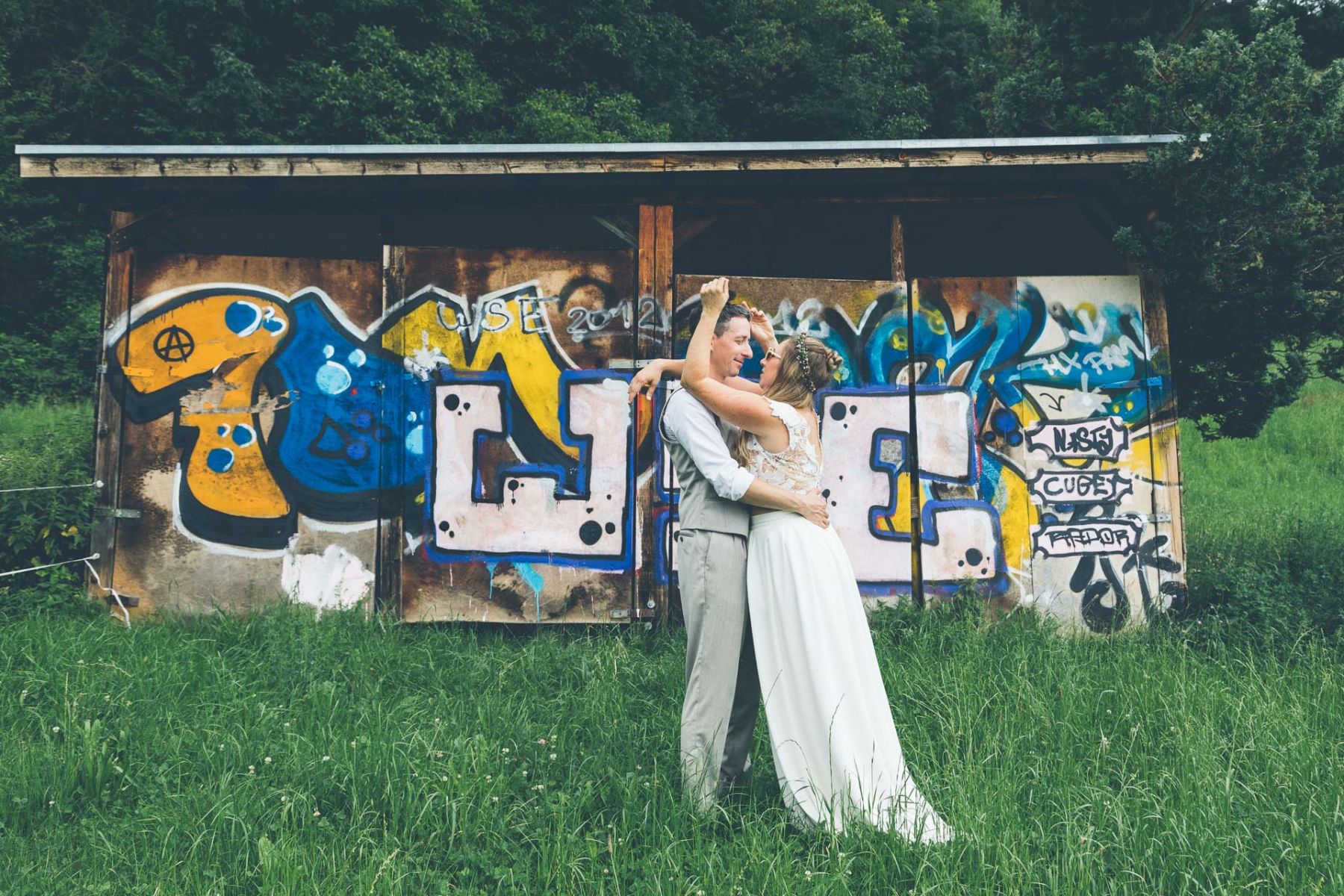 So blieb diese Hochzeit unvergesslich: eine Mischung aus Alpenromantik, urbanem Graffiti, internationalen Gästen und unbändiger Lebensfreude. Ein Fest, das zeigte, dass Liebe keine Kulisse braucht – außer der, die man sich gemeinsam schafft.