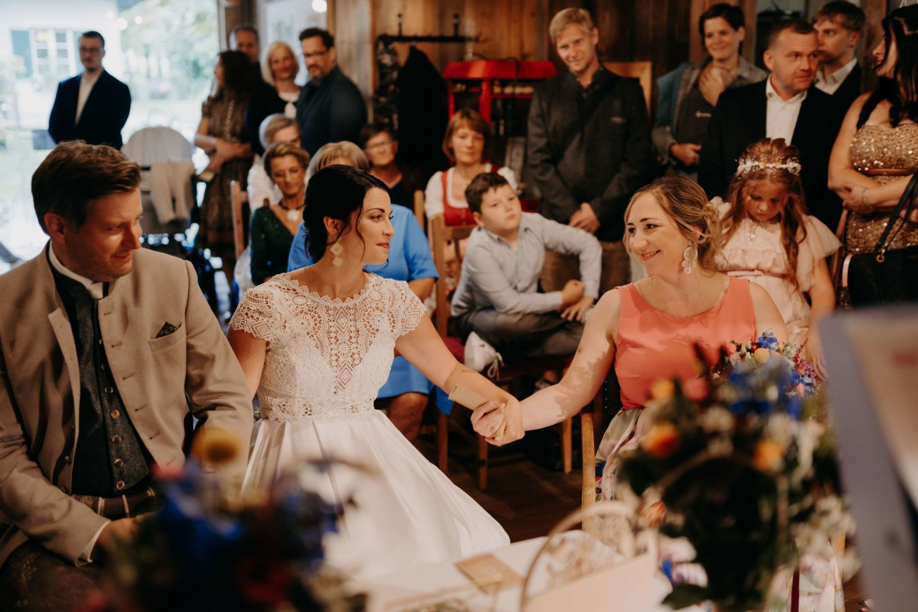 Auch wenn das Wetter bei der Trauung nicht ganz mitspielte, war die Hochzeit dennoch ein Traum. Die Indoor-Location des Jagawirt bot eine stilvolle und zugleich gemütliche Atmosphäre, die perfekt zu den beiden passte. Es waren Momente voller Emotionen – und genau diese durfte ich in meinen Fotos für immer festhalten.