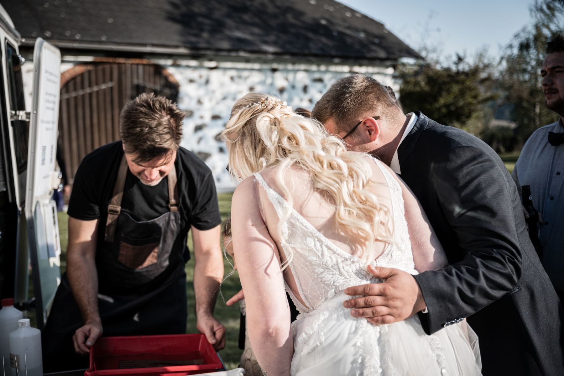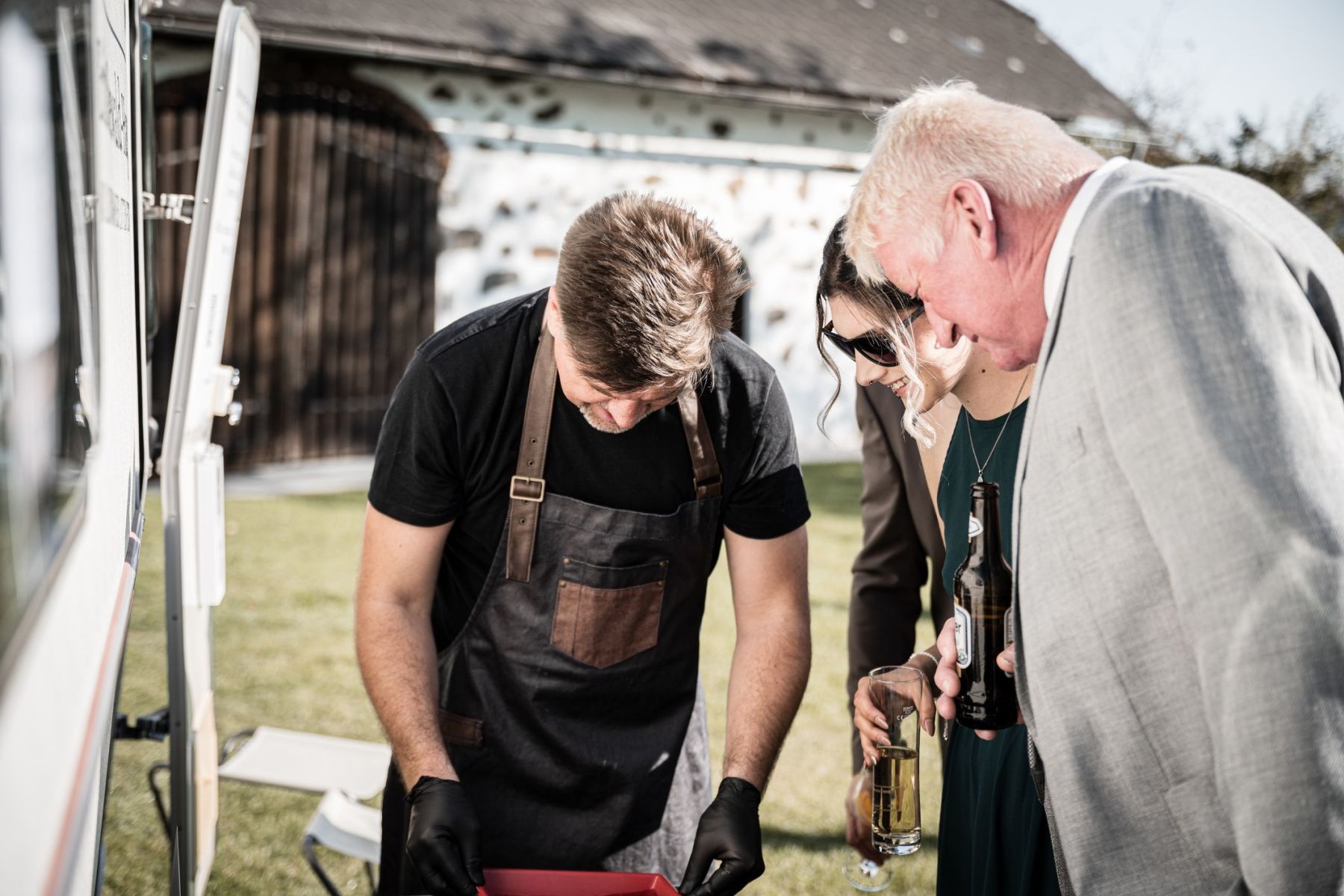 Ein Highlight war unser Vintage-Wohnwagen „Scotty“, der als mobile Dunkelkammer für handgefertigte Kollodium-Fotografien diente und den Gästen einzigartige Erinnerungen bot.
