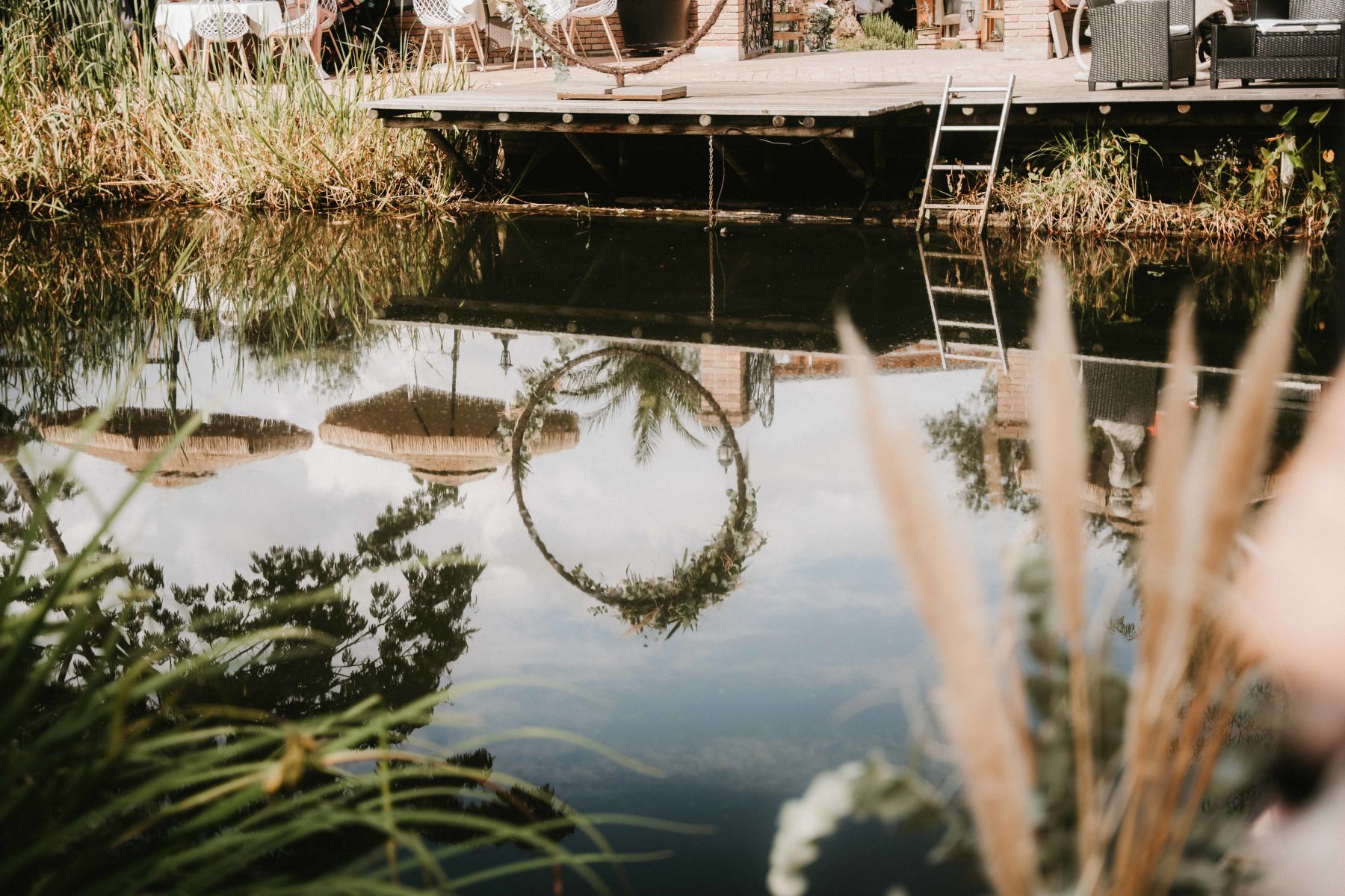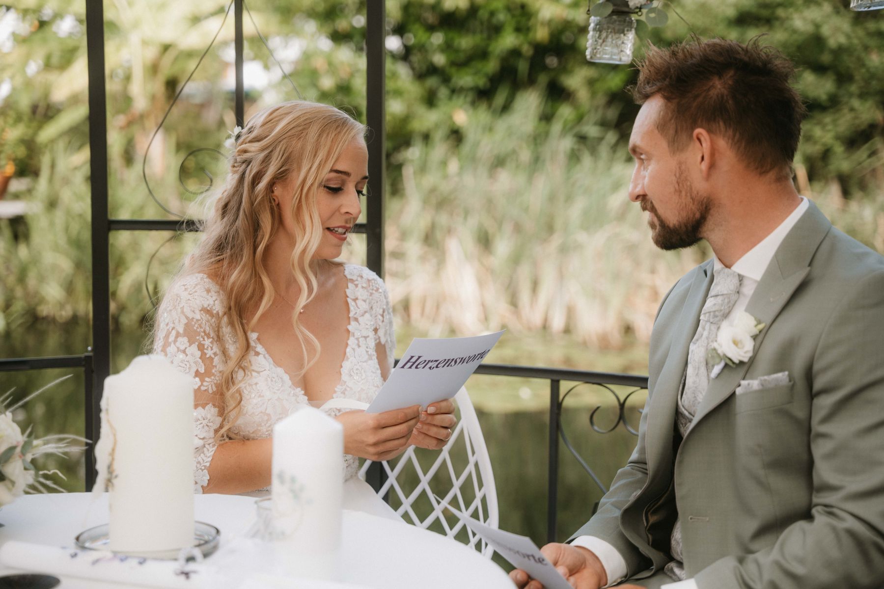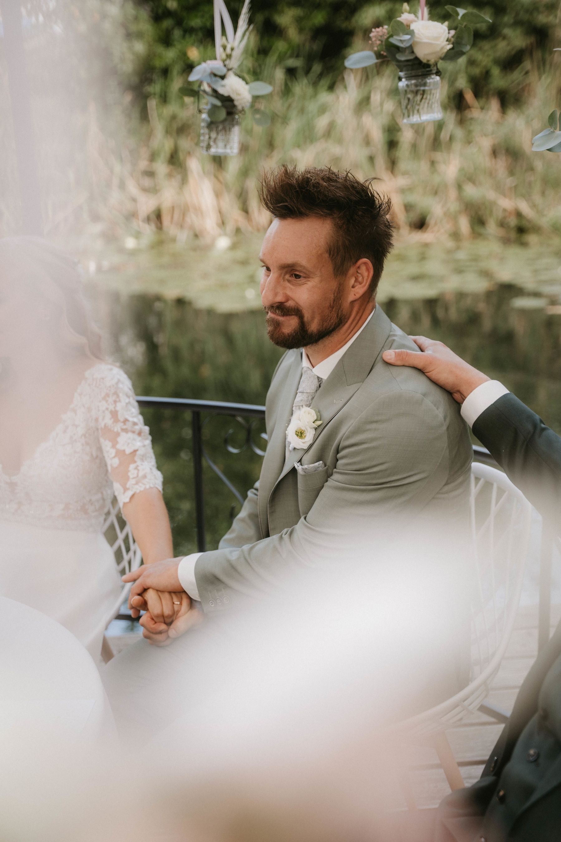 Die freie Trauung fand direkt am Teich statt - bei strahlendem Wetter, umgeben von Weinreben, Natur und einer unglaublichen Stimmung.
