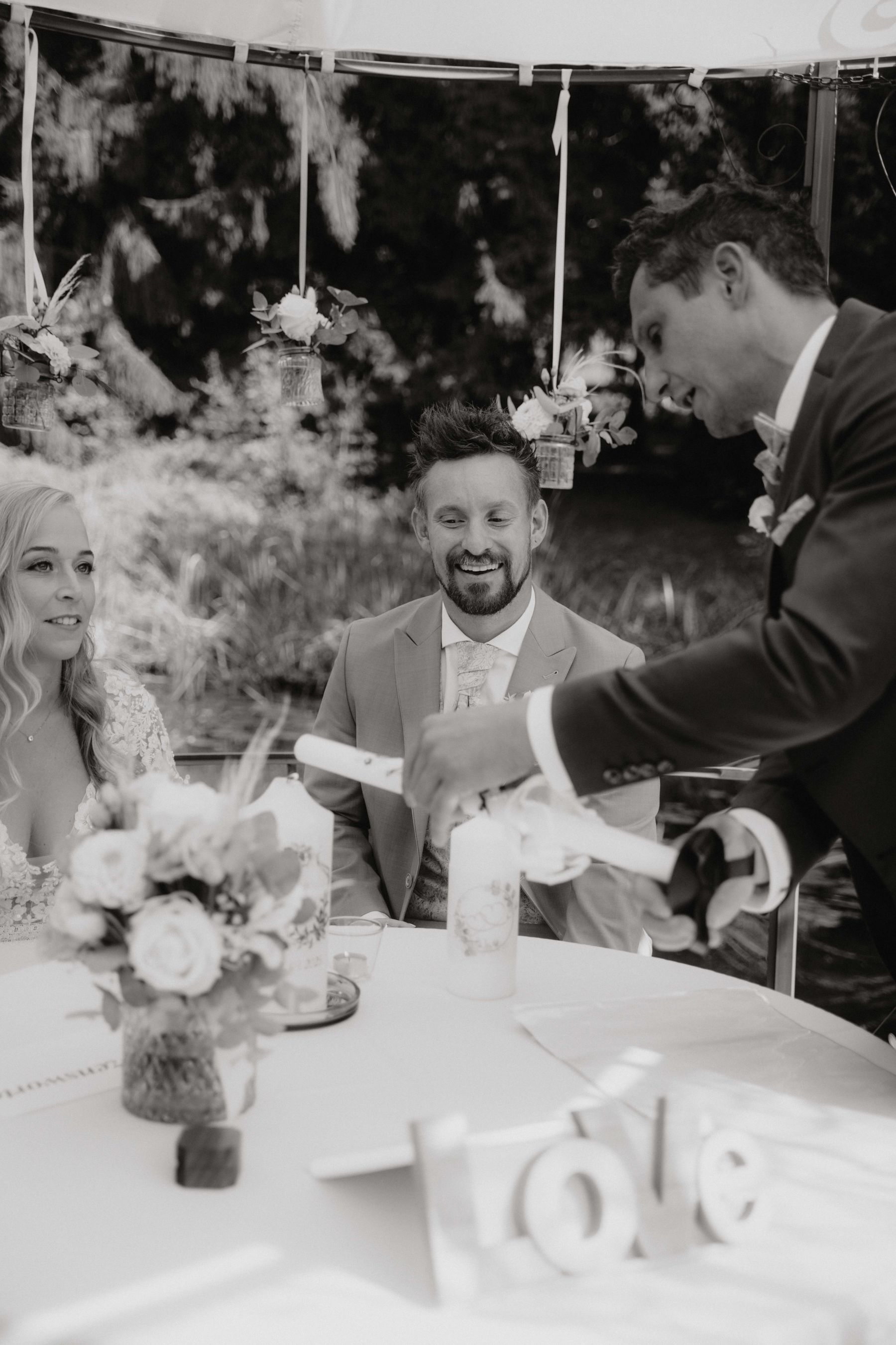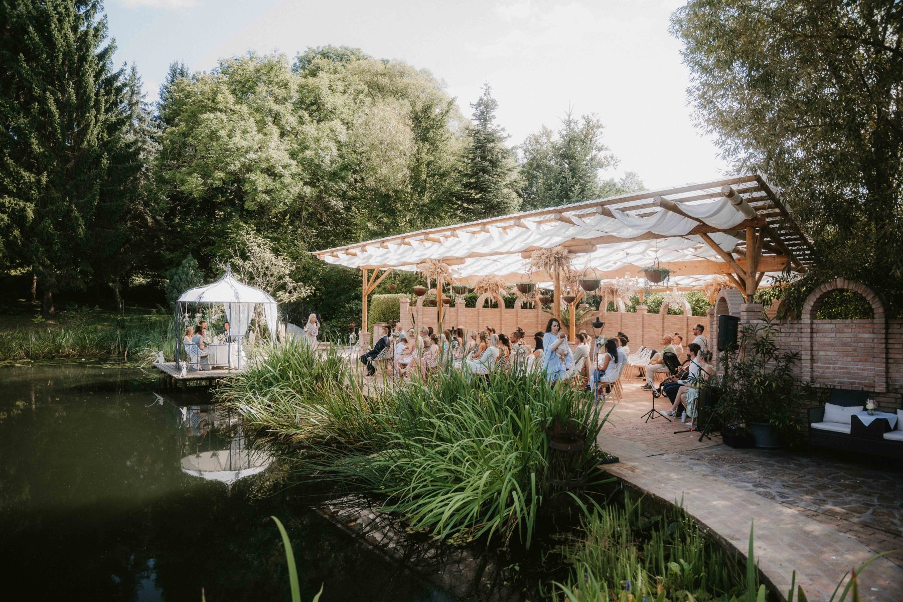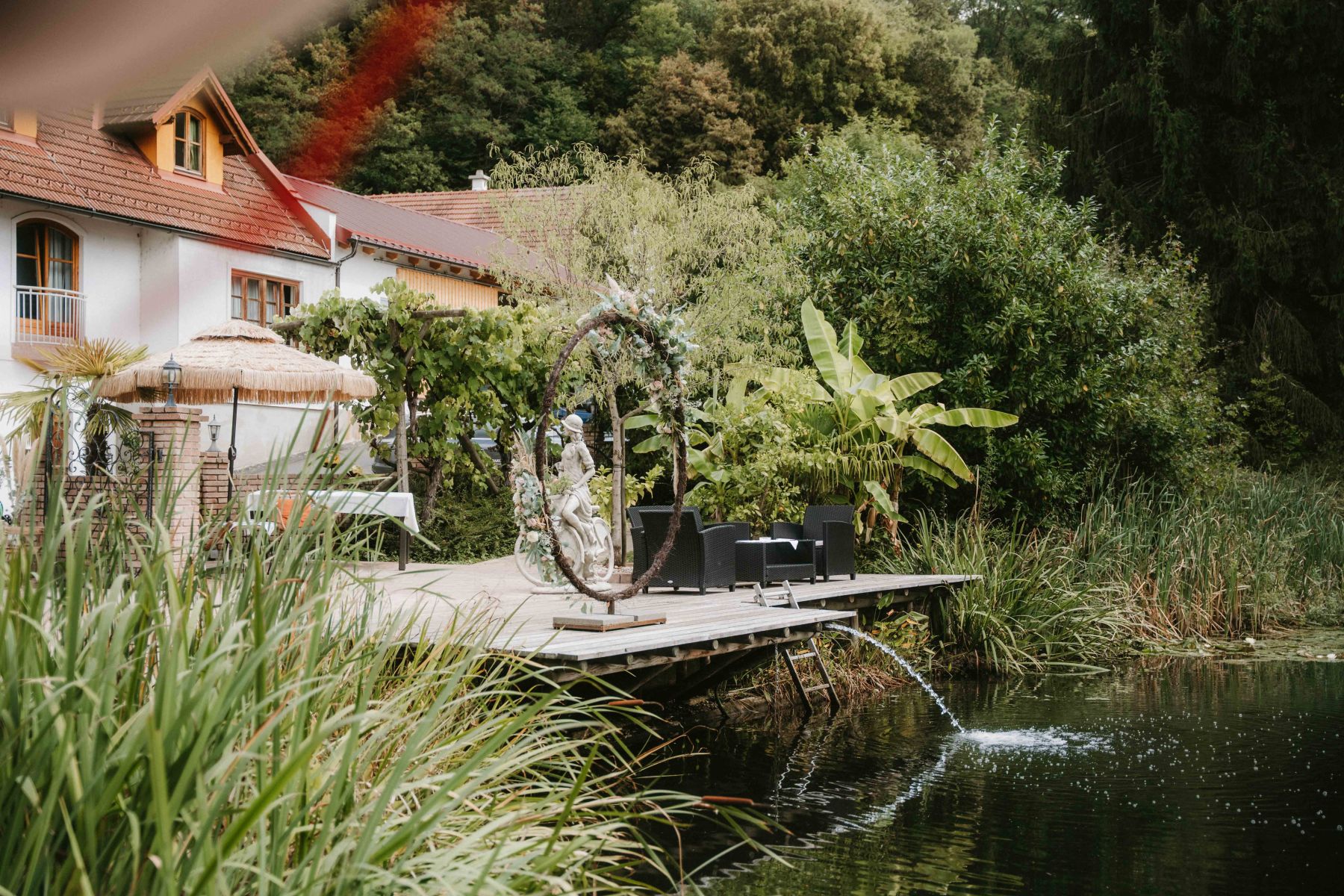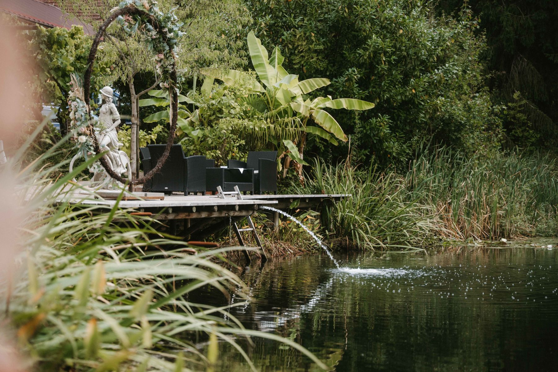 Die freie Trauung fand direkt am Teich statt - bei strahlendem Wetter, umgeben von Weinreben, Natur und einer unglaublichen Stimmung.