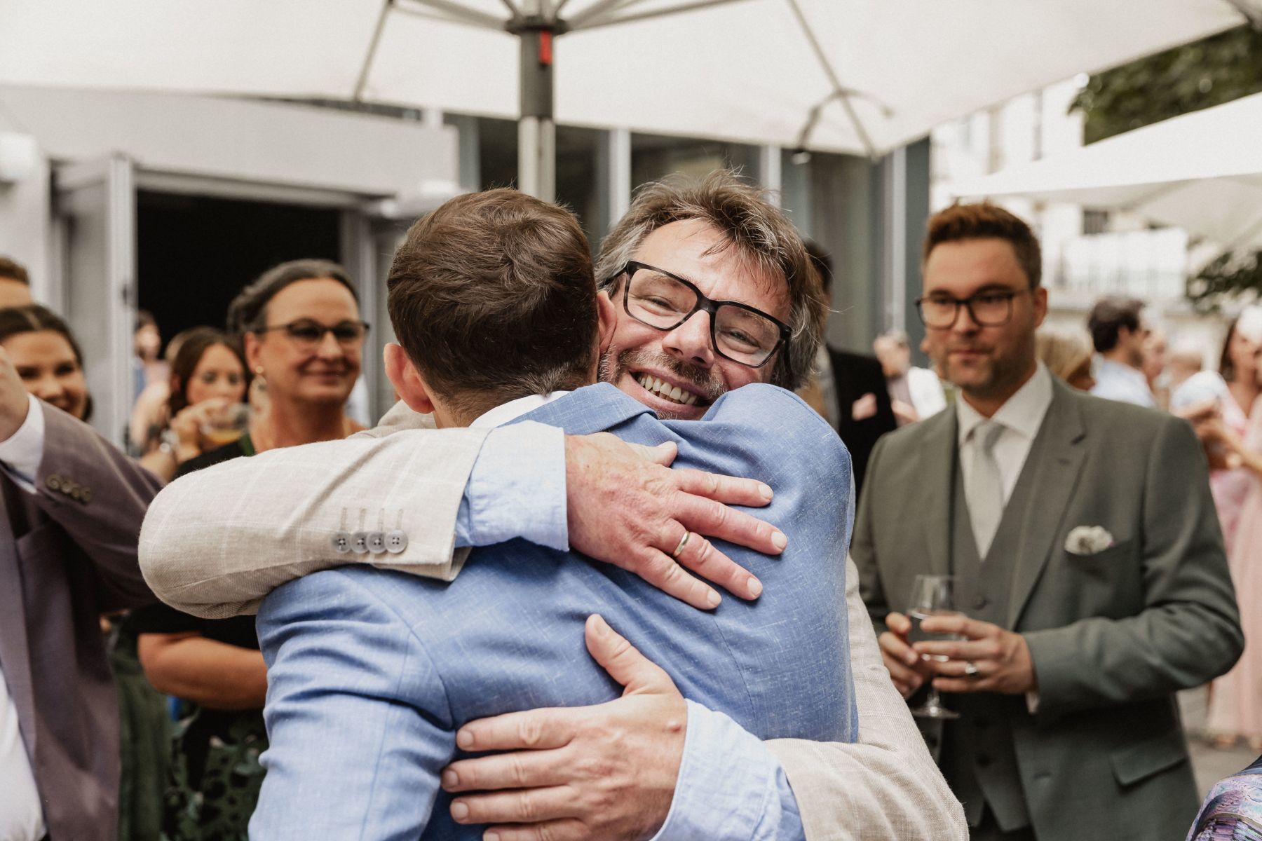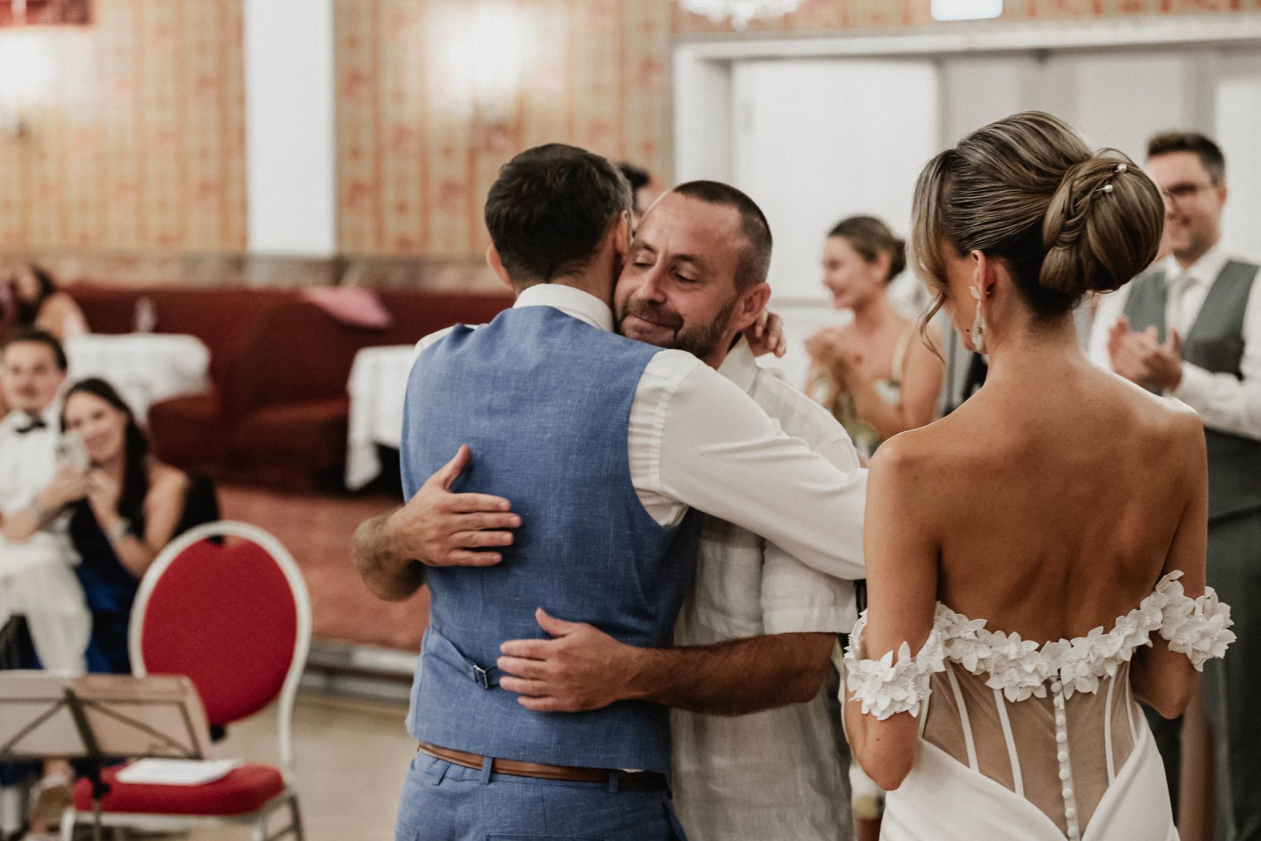 Ein Highlight der Feier war zweifellos der Überraschungsgast Steffen Hofmann, der Oliver, einen großen Fan, mit seiner Anwesenheit begeisterte. Doch nicht nur dieser besondere Moment wird in Erinnerung bleiben – zahlreiche Freunde überraschten das Brautpaar mit berührenden Musik- und Gesangsauftritten, die die Feier noch emotionaler machten.