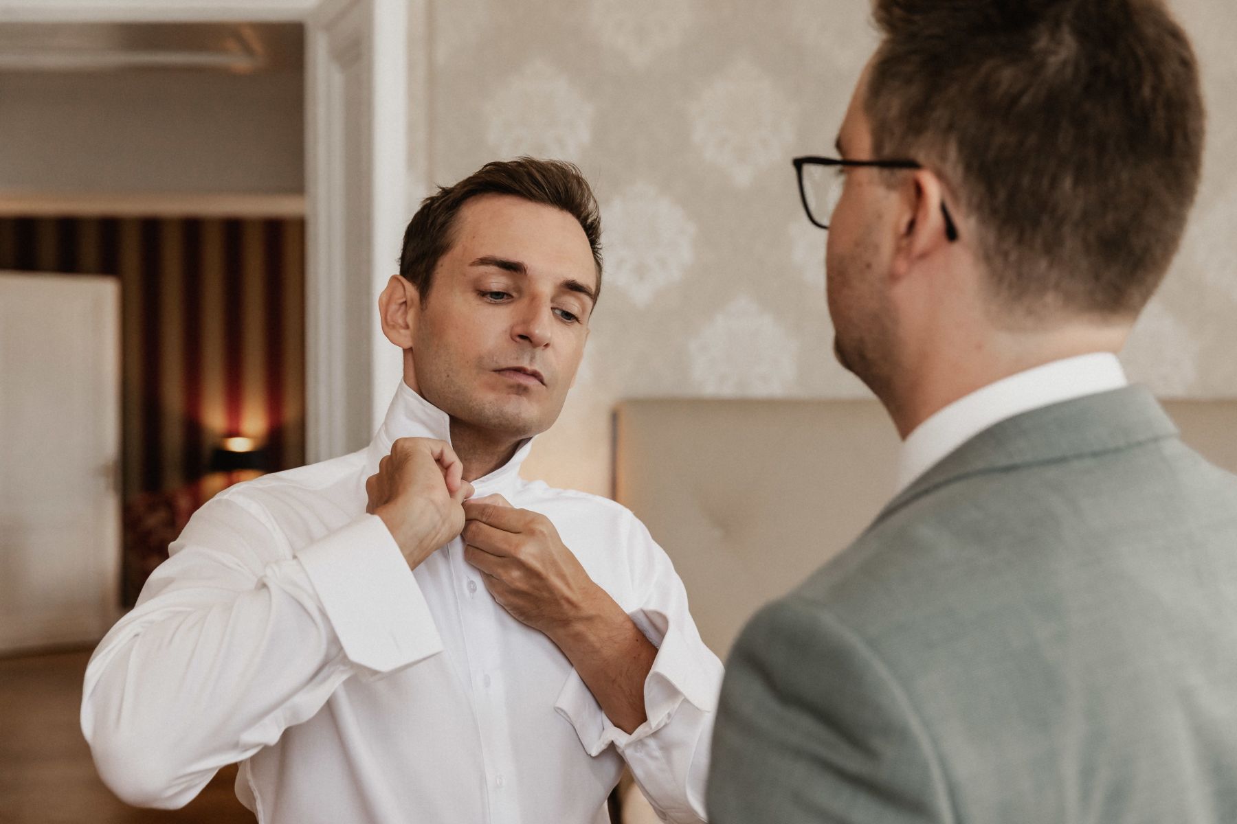 Schon die ersten Stunden im eleganten Parkhotel Schönbrunn in Wien waren von Vorfreude erfüllt. Umgeben von ihren engsten Freunden und der Familie, bereitete sich Melanie liebevoll auf den großen Moment vor. Die Atmosphäre war entspannt und voller Vorfreude.