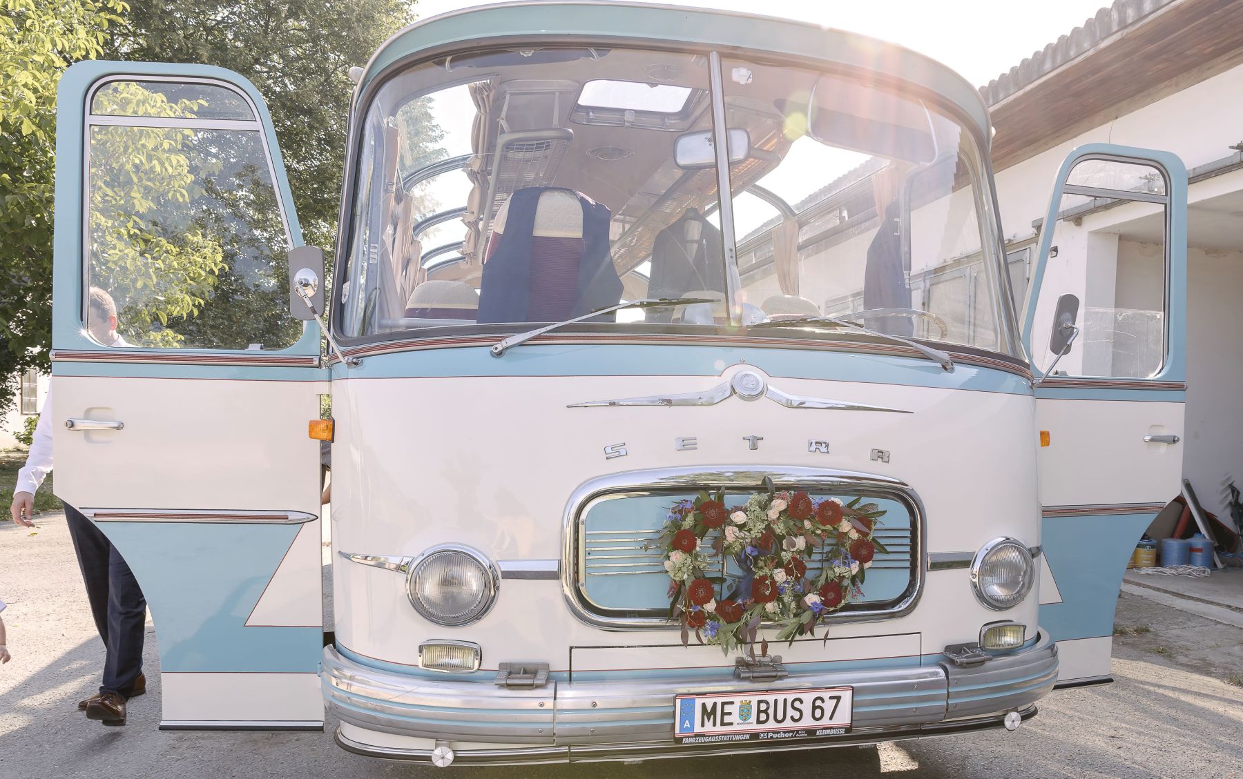 Die Hochzeitstag begann mit einem First-Look-Shooting in völliger Abgeschiedenheit, wo die Flüsse Melk und Plank zusammentreffen. Die Braut und der Bräutigam genossen diesen intimen Moment in der freien Natur, fernab vom Trubel. Anschließend fand die kirchliche Trauung in der malerischen Kirche von Sankt Leonard statt, wo Familie und Freunde das Paar feierlich empfingen. Nach der emotionalen Zeremonie ging es weiter zur Location Babenbergerhof in Ybbs an der Donau. Dort erwartete die Gäste ein stilvolles Hochzeitsdinner, bei dem kulinarische Köstlichkeiten serviert wurden. Der festlich geschmückte Saal bot den perfekten Rahmen für die anschließende Party, bei der bis in die frühen Morgenstunden getanzt und gefeiert wurde. Die Kombination aus traditionellem Charme und modernen Elementen machte diesen Tag unvergesslich.