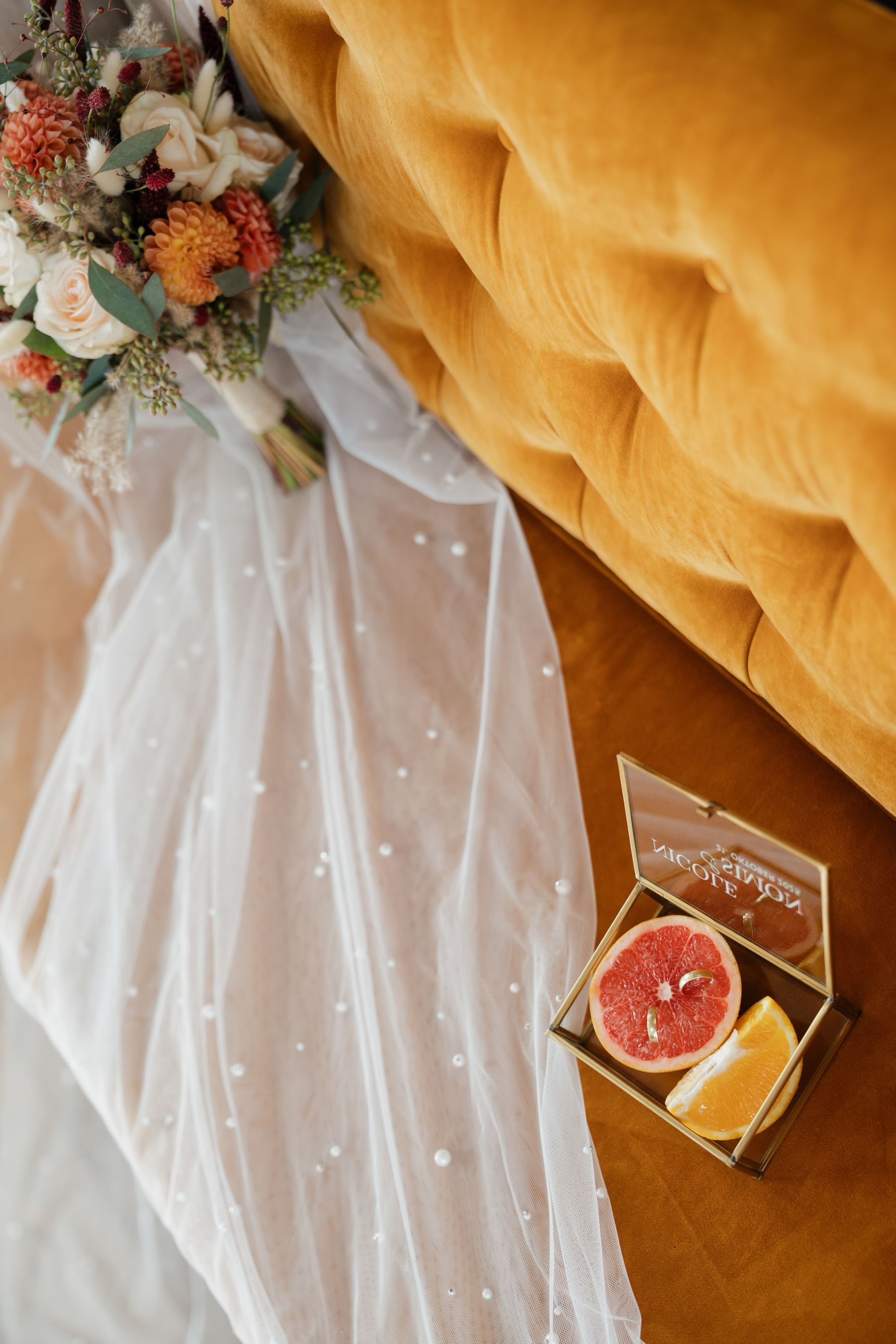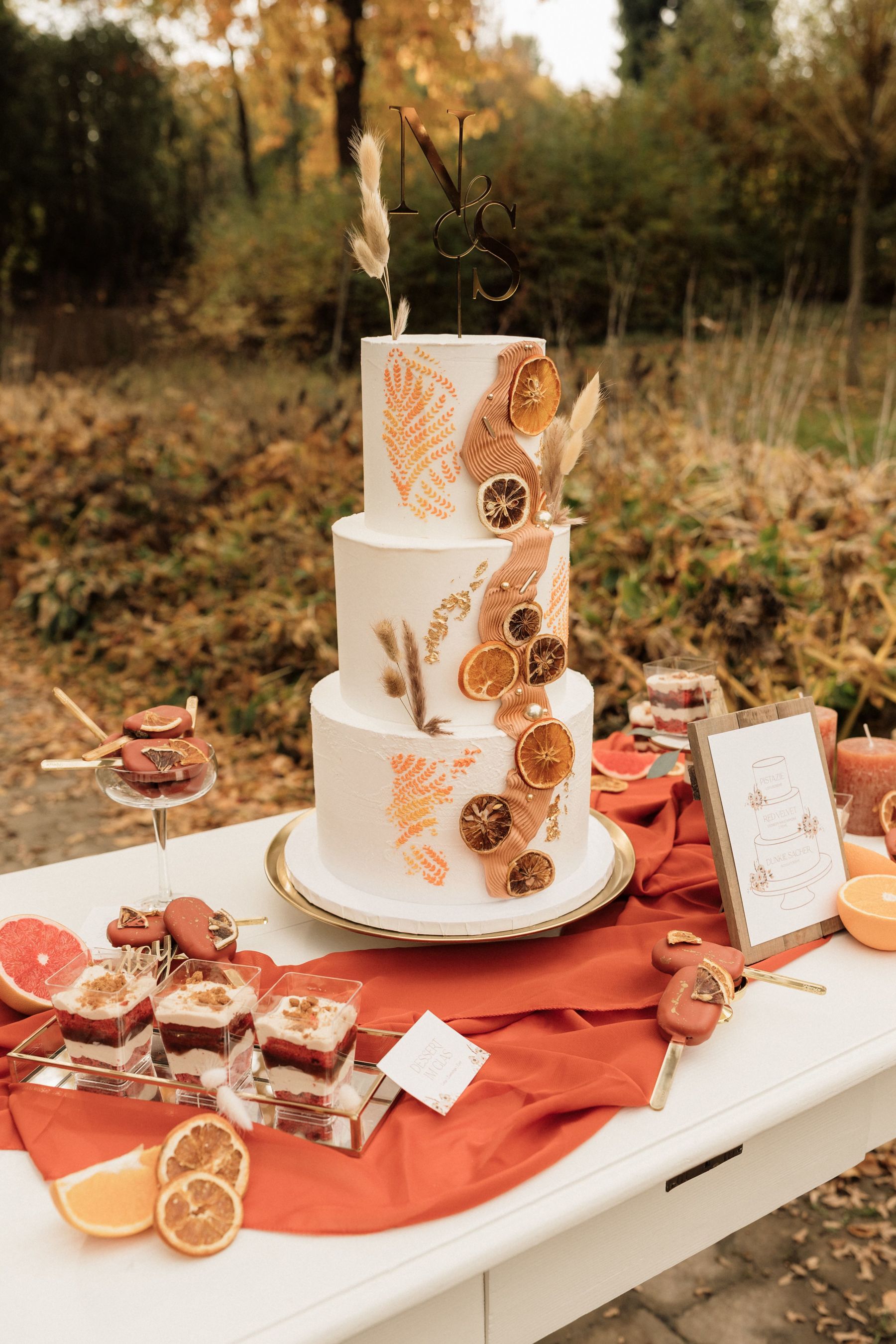 "Autumn Glow - Rustic Boho" zeigt ein herbstliches Farbkonzept, verbunden mit sanften Boho Elementen. Mit erdigen & warmen Natürtönen, verschiedenen Orange-Tönen & goldenen Akzenten entsteht ein Setting, das die Gemütlichkeit & die Eleganz des Herbstes zeigt. Getrocknete sowie frische Orangen und Zitronen sorgen zusätzlich für einen Hauch von Frische, um etwas Leichtigkeit reinzubringen.