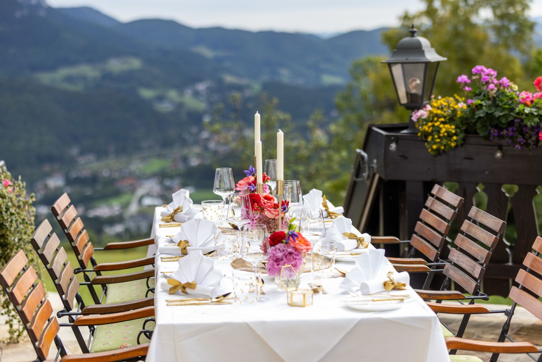 Ein weiteres Highlight ist die Hochzeitstafel auf der Sonnenterrasse mit Blick ins Tal. Lasst euch von den authentischen Augenblicken, warmen Farben und idyllischen Details inspirieren – vielleicht wird auch eure Traumhochzeit hier Wirklichkeit.