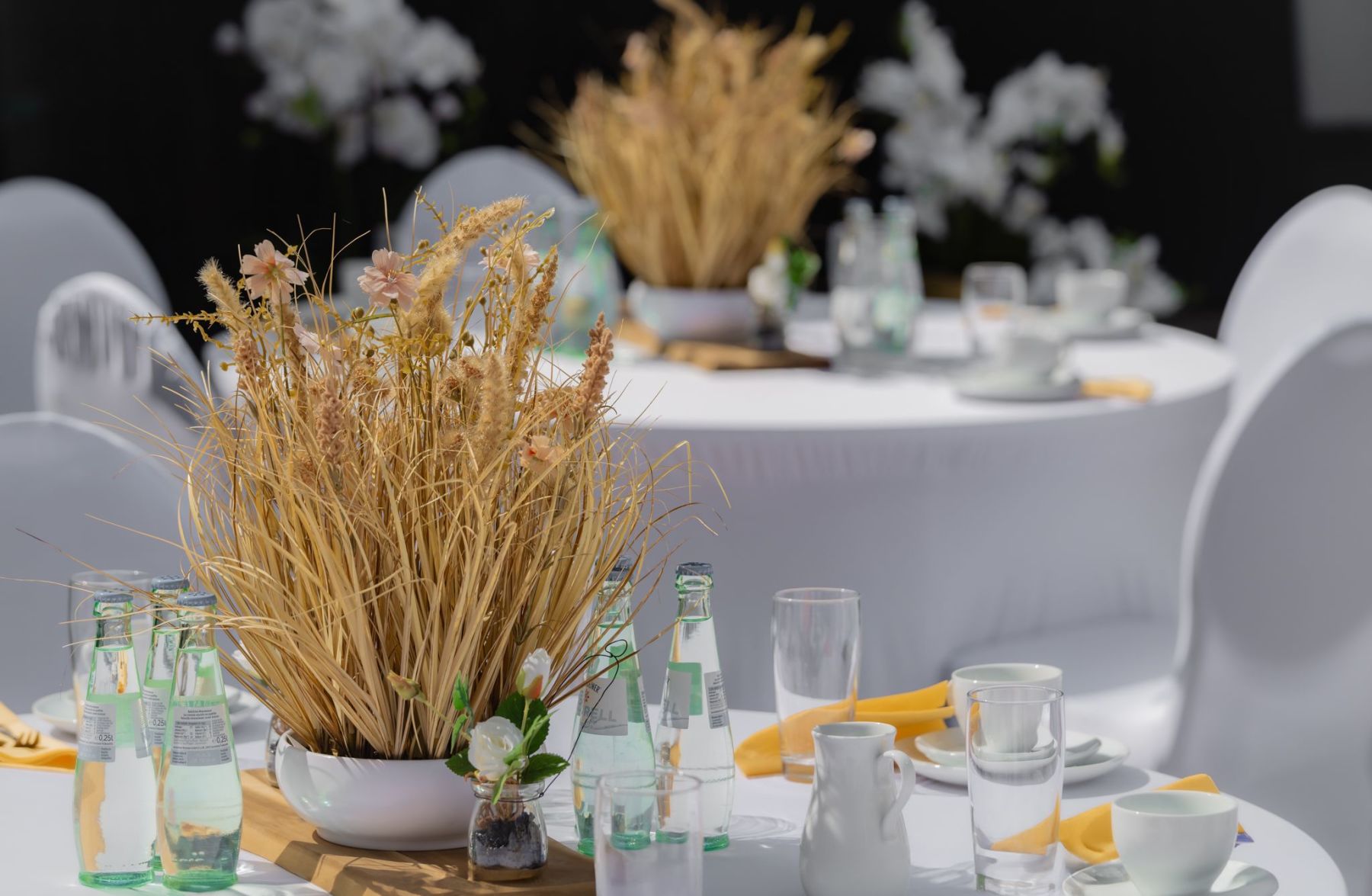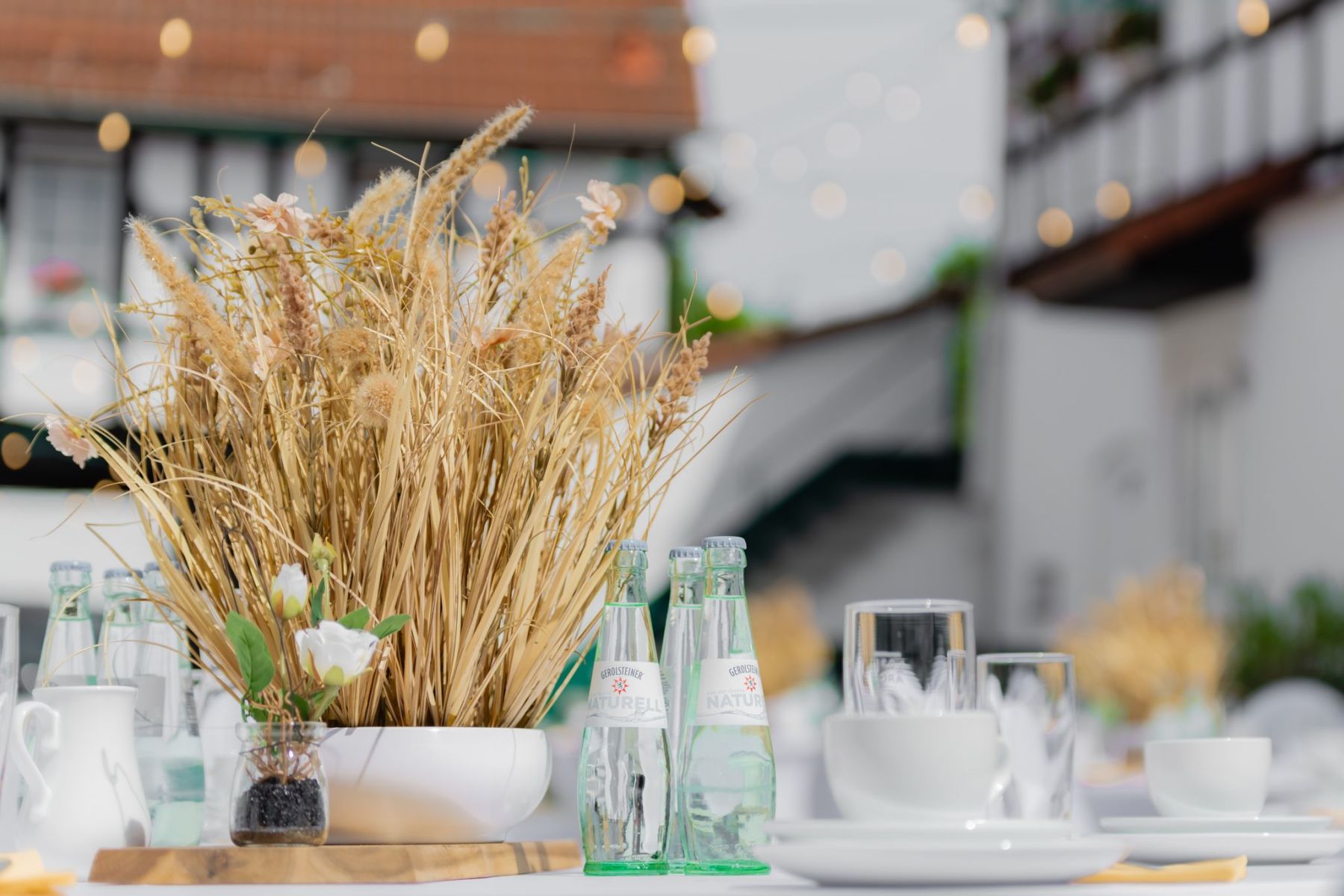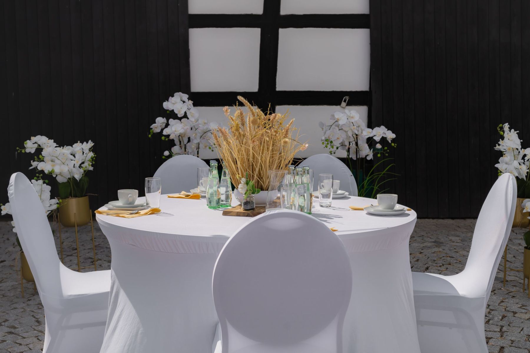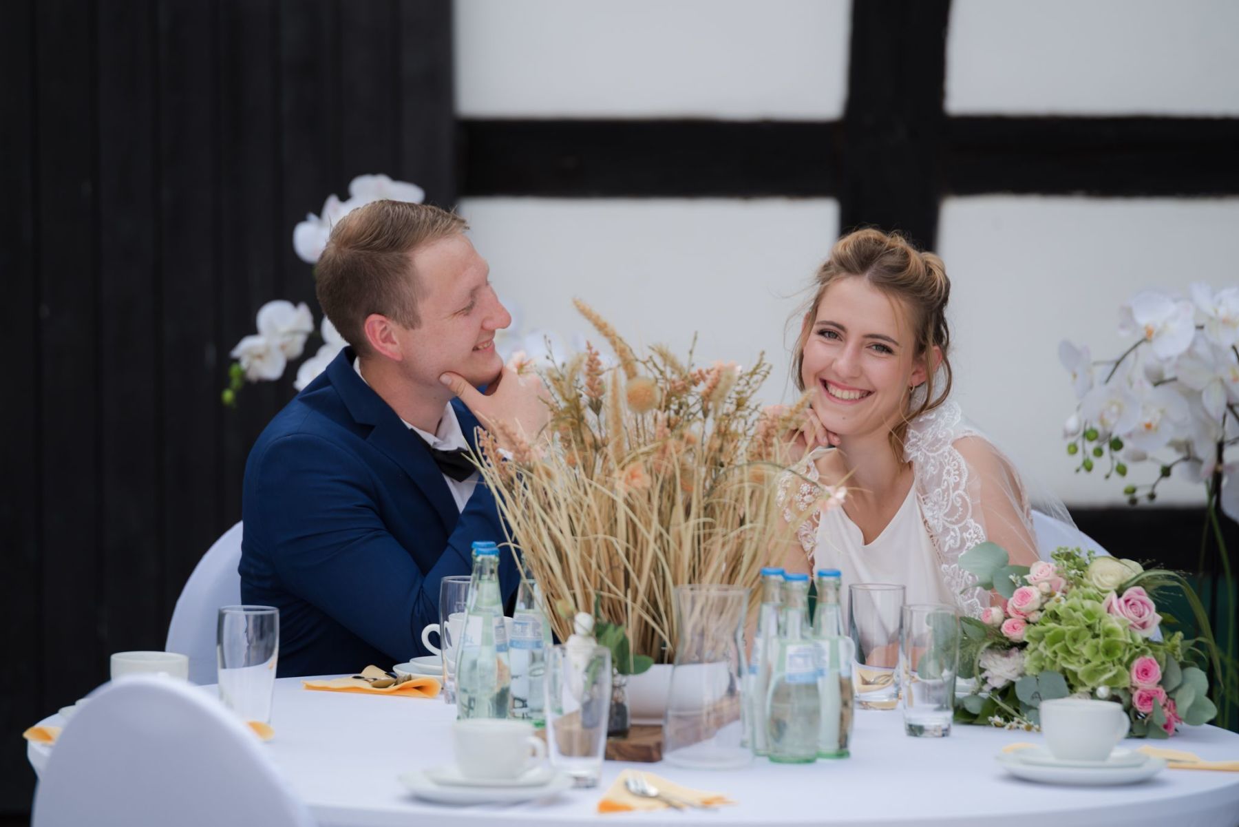 Wir haben für euch eine Musterhochzeit liebevoll inszeniert und fotografiert, damit ihr einen ersten Eindruck bekommt, wie eure Feier bei uns aussehen könnte. Hier seht ihr ein Outdoor Beispiel, unseren Hof und den Eventraum. Danke an das Brautpaar, was dazugekommen ist.