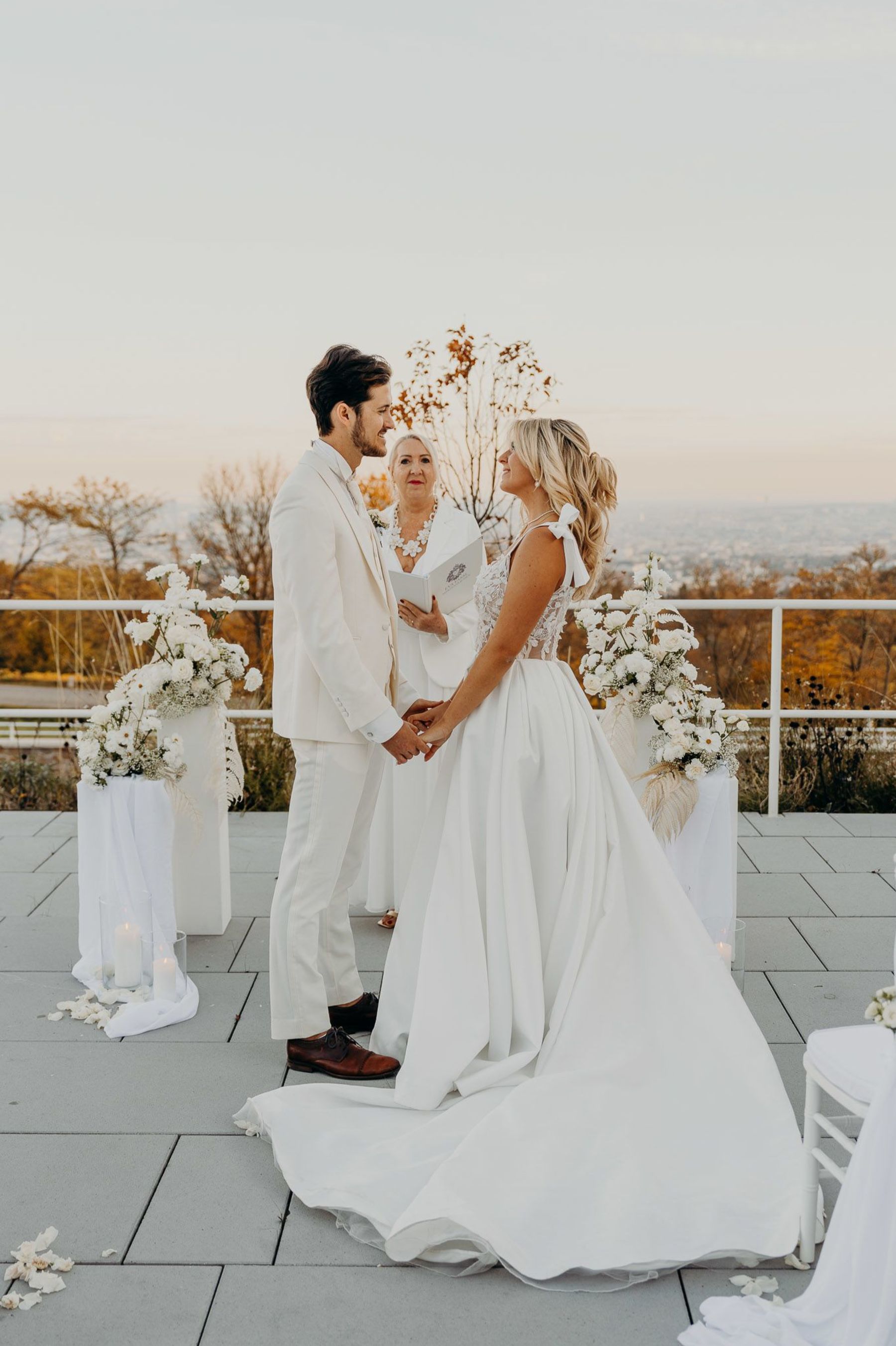 In der atemberaubenden Kulisse des Wiener Cobenzl, mit einem weiten Blick über die Stadt, haben Chiara und Alex ihre Liebe in einer intimen Elopement-Hochzeit gefeiert. Im stilvollen All-White Look strahlte jede Nuance ihrer Feier pure Eleganz aus, und das harmonisch abgestimmte Weiß zog sich bis ins kleinste Detail. In der exklusiven Atmosphäre des Weitsicht Cobenzl wurde ihre Liebe in einzigartigen Momenten verewigt