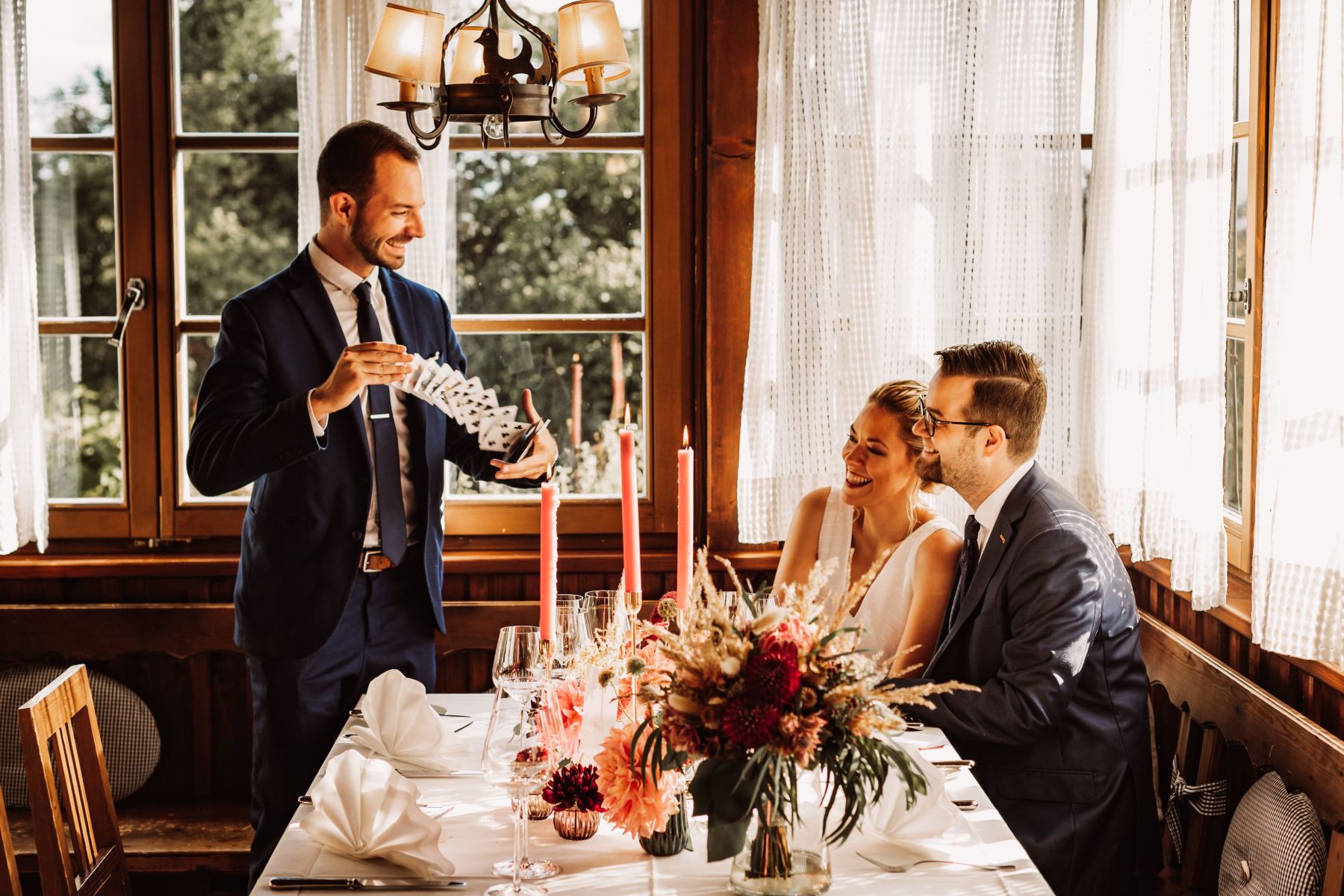 Als professioneller Zauberkünstler mit jahrelanger Erfahrung auf Hochzeiten, Firmenfeiern und internationalen Events legt Ben großen Wert auf Stil, Niveau und persönliche Note. Gemeinsam mit dem Brautpaar gestaltet er das magische Erlebnis individuell – abgestimmt auf Ablauf, Stimmung und Gäste und überbrückt charmant sämtliche Wartezeiten am Hochzeitstag. So entsteht Magie, die nicht nur beeindruckt, sondern berührt.