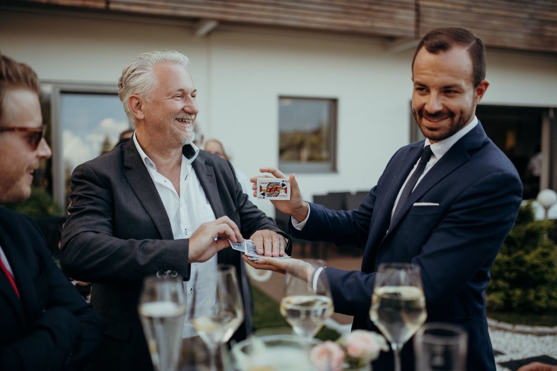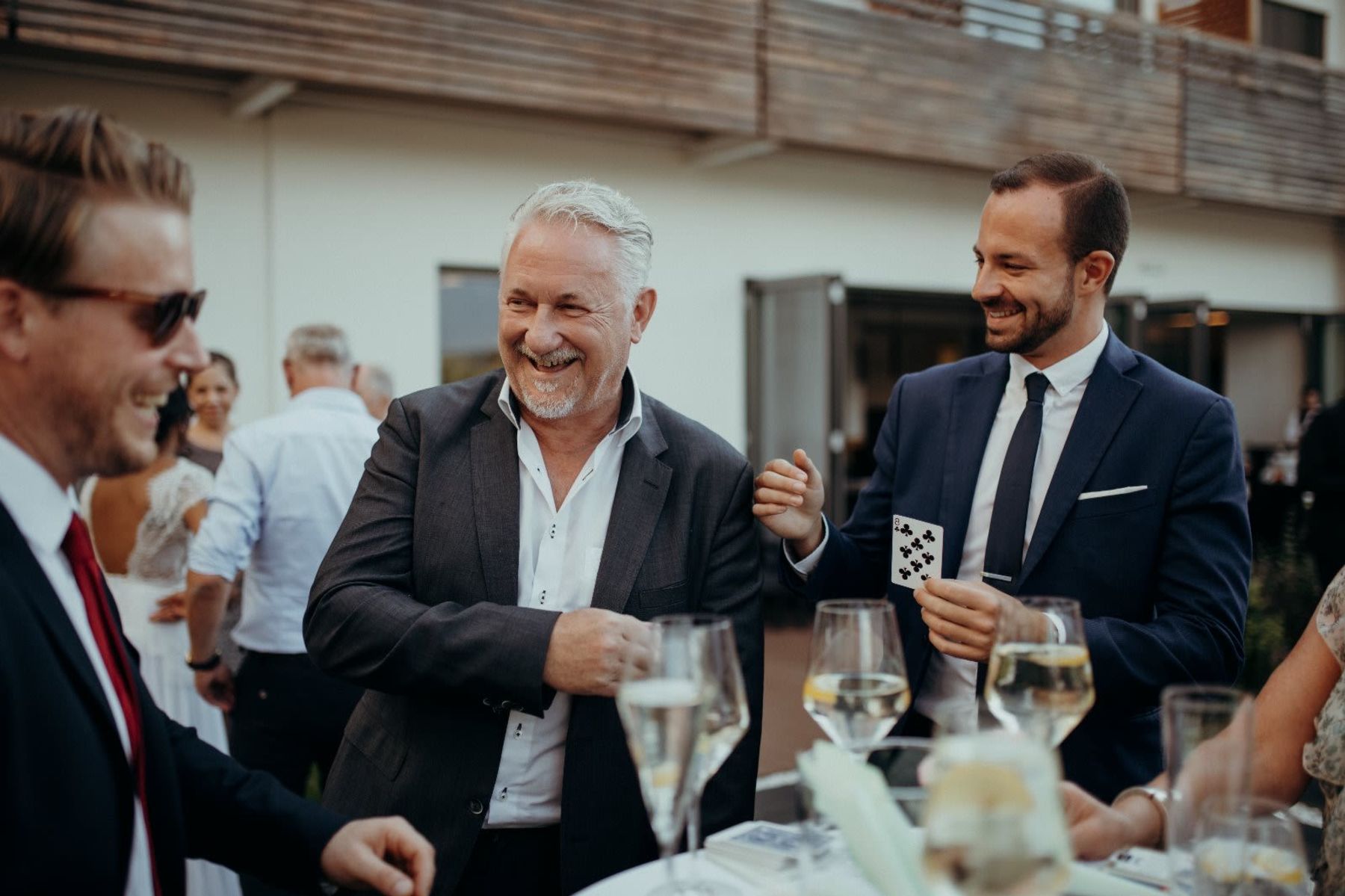 Eure Hochzeit ist ein Tag voller Liebe, Lachen und besonderer Momente. Genau hier setzt Ben Spade an: Mit moderner Zauberkunst, charmantem Humor und viel Gefühl schafft er magische Erlebnisse, die Brautpaar und Gäste noch lange in Erinnerung behalten. Seine Magie ist kein Bühnenklischee, sondern feinfühliges Entertainment, das verbindet – mitten im Geschehen, hautnah und mit Stil.Ob beim Sektempfang, als Begleitung am Nachmittag oder als Show-Highlight am Abend: Ben versteht es, die richtige Atmosphäre zu schaffen. Seine Auftritte sind interaktiv, humorvoll und emotional – Momente voller Staunen, Lachen und Gänsehaut. Jeder Effekt ist mit Liebe inszeniert, jede Reaktion echt. Das Ergebnis: unvergessliche Erinnerungen, die euren großen Tag noch ein Stück besonderer machen.