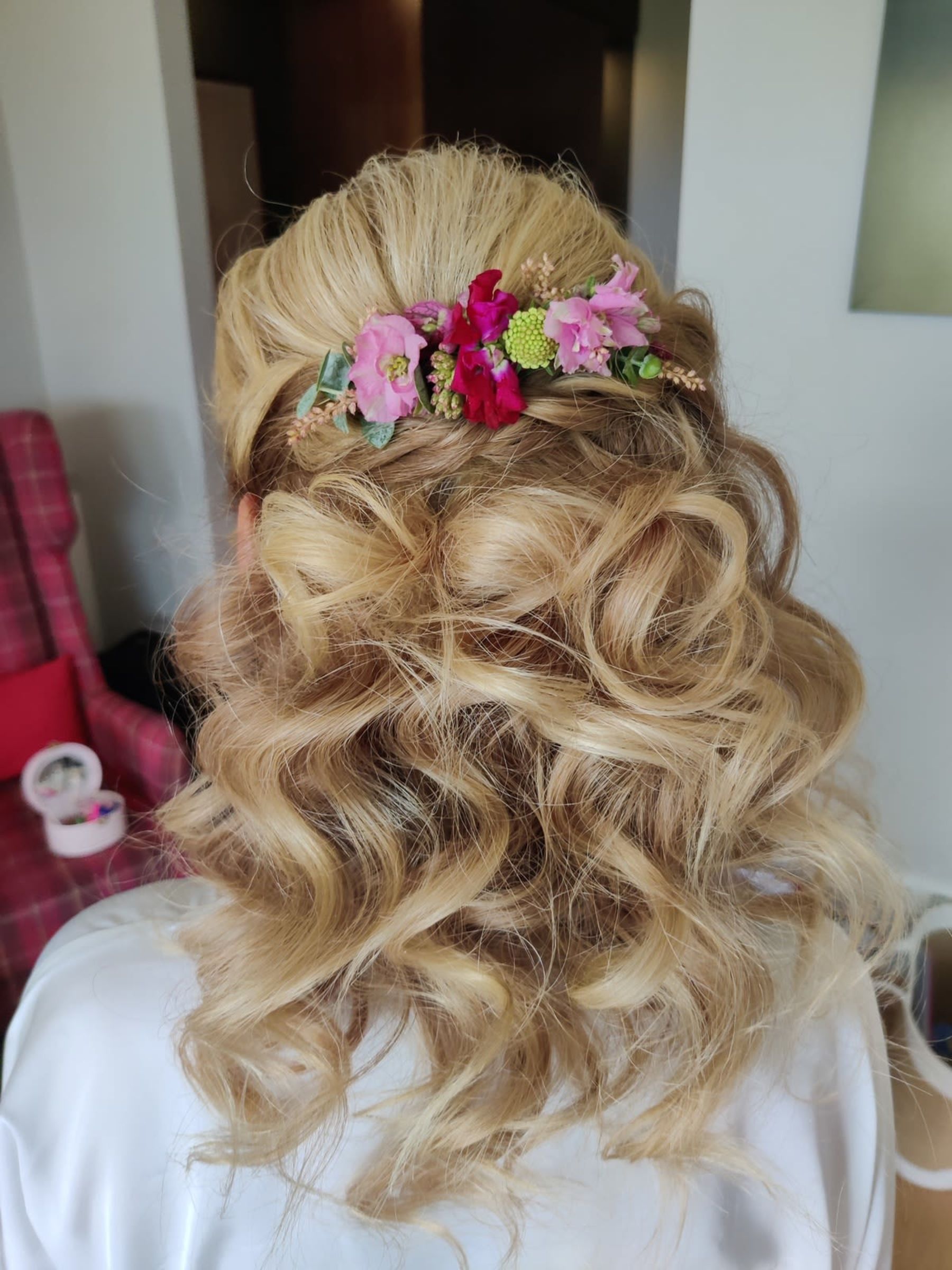 Vom Probestyling bis zum Hochzeitslook war alles einfach und unkompliziert. Manuela war überpünktlich und hat auf alle meine Wünsche Rücksicht genommen. Haare und Makeup waren wunderschön und haben den ganzen Tag und die ganze Nacht perfekt gehalten :-) Größes Plus: Probestyling war bei mir Zuhause, was für mich als Mama wirklich sehr angenehm war. Ich kann hier nur meine größte Empfehlung aussprechen!