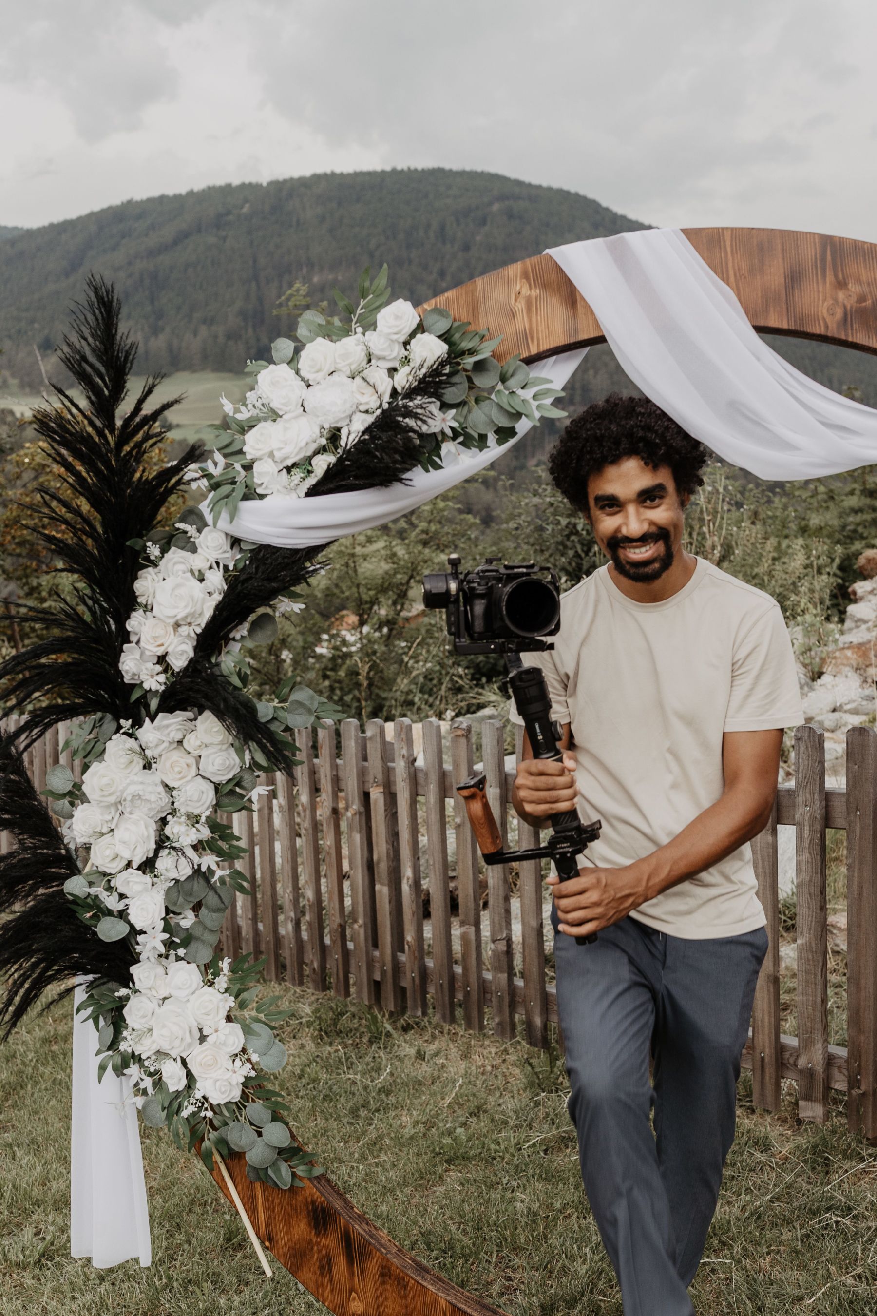 Über die Jahre habe ich mir zudem ein starkes Netzwerk aus Hochzeitsdienstleistern aufgebaut: Fotograf:innen, DJs, Weddingplanner, Florist:innen und Locations. Eine gute Zusammenarbeit ist für mich essenziell. Besonders mit Fotograf:innen stimme ich mich im Vorfeld ab, damit wir harmonisch arbeiten und uns gegenseitig unterstützen statt behindern. Das sorgt für eine entspannte Atmosphäre – und genau diese Stimmung sieht man später im Film.