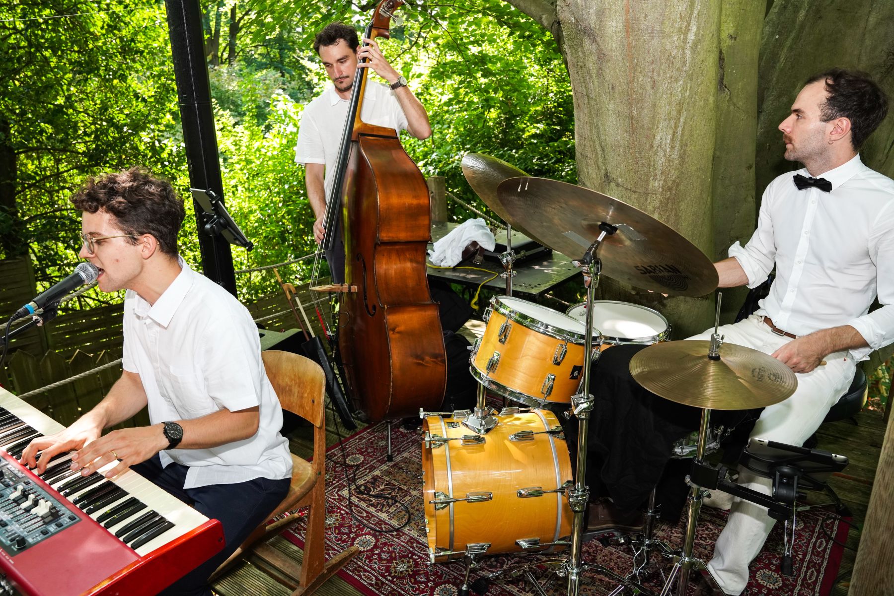 Sucht ihr nach der perfekten musikalischen Begleitung für euren Hochzeitstag? Wir sind ein vielseitiges Trio, bei dem unser Pianist auch als Klarinettist auftreten kann – ideal für Auftritte als Klavier- oder Klarinettentrio. Ob Jazz, Pop, Latin oder Filmmusik – wir erfüllen eure individuellen Songwünsche und sorgen für die passende Atmosphäre, vom Empfang bis zum Tanz.