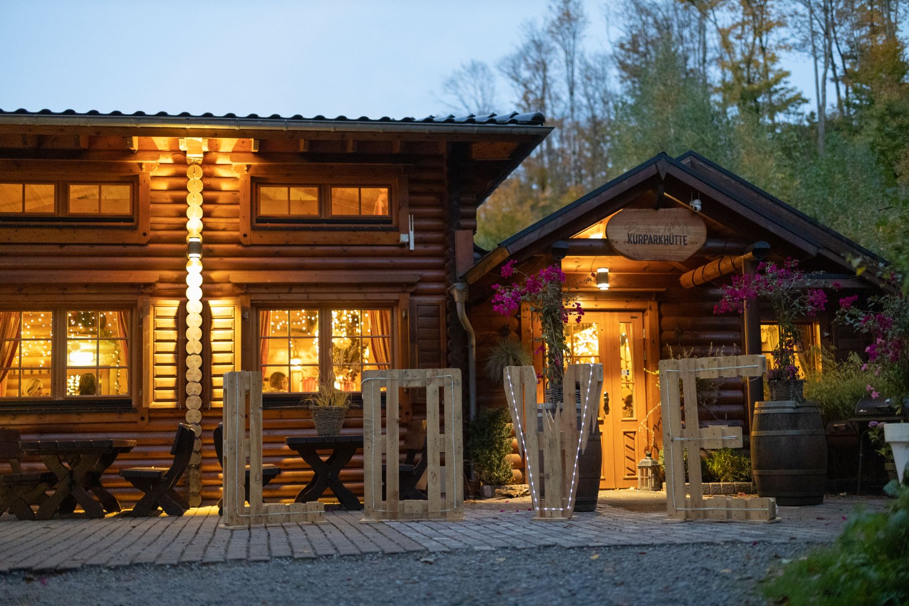 Mitten im Wald, idyllisch im Wald über den Dächern vom Hochsauerland gelegen, erwartet euch die Briloner Kurparkhütte. Eine einzigartige Eventlocation für Hochzeiten ab 35 Personen, die Natürlichkeit, urige Gemütlichkeit und kulinarische Genüsse harmonisch vereint.