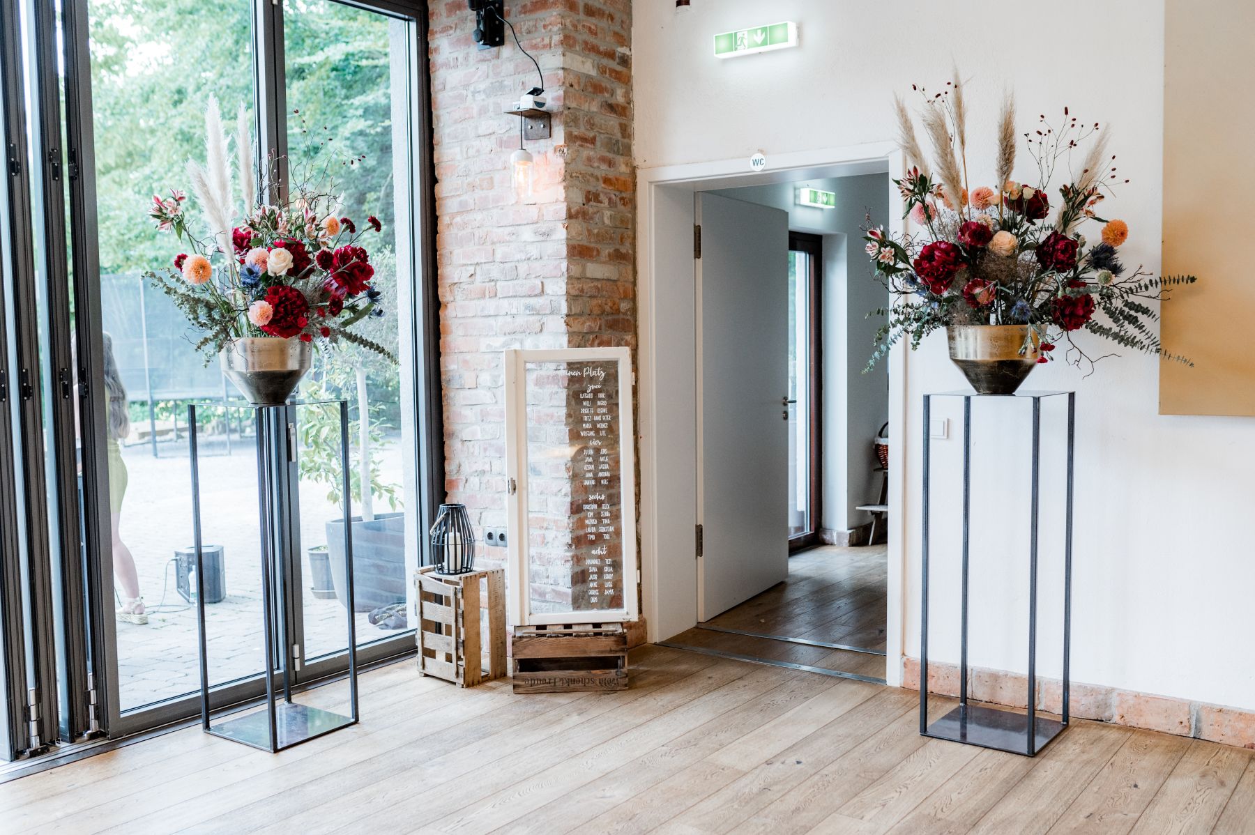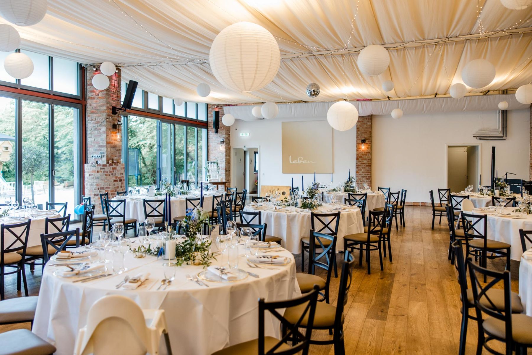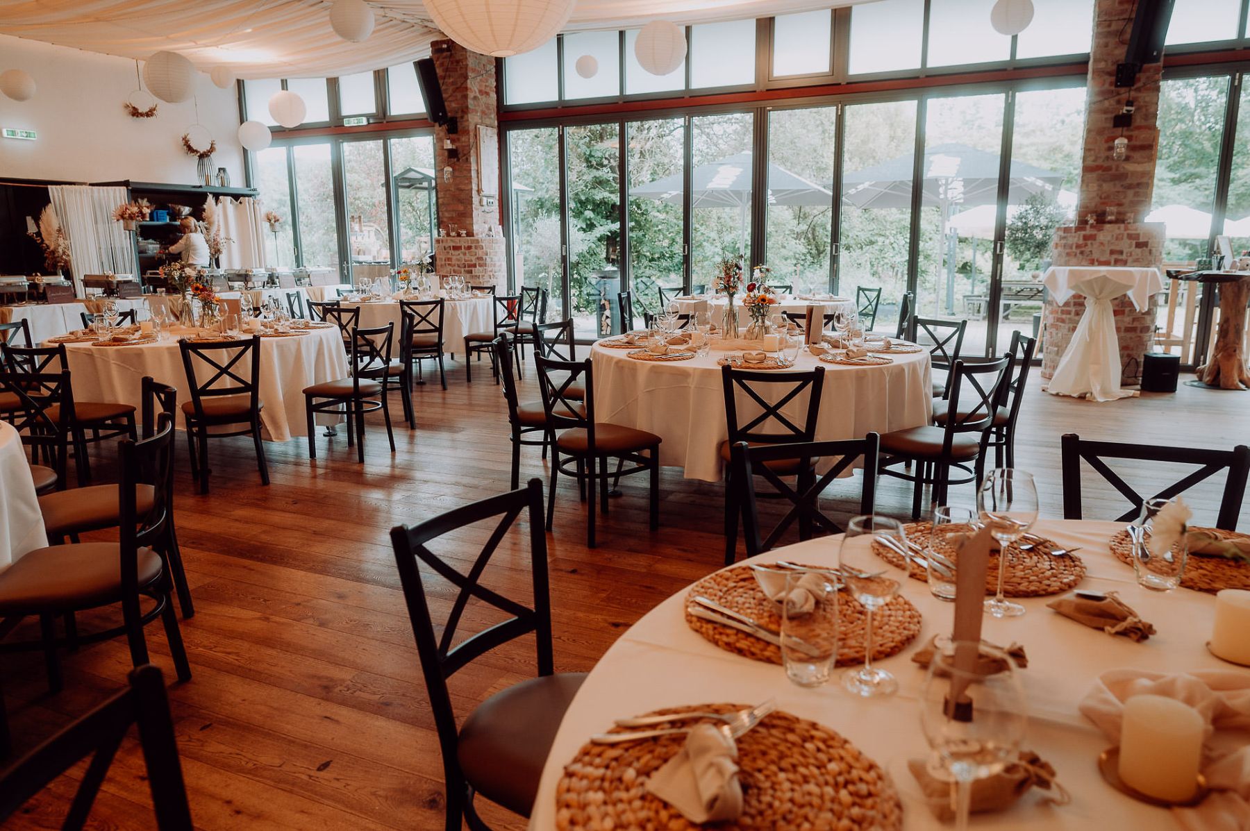 Unsere große Halle ist das Herzstück für Feste mit bis zu 199 Personen. Lichtdurchflutet, stilvoll und mit rustikalem Charme – aus einer alten Werkstatt wurde ein Ort, der Raum für große Gefühle schafft. Ob Hochzeit, Firmenfeier oder Jubiläum: Hier wird’s besonders, persönlich und ganz nach euren Vorstellungen.
