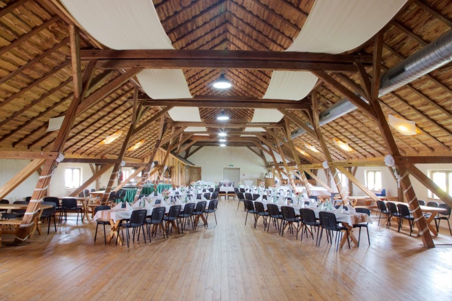 Das Rittergut Nickelsdorf, betrieben vom Ländliche Kerne e.V., bietet eine idyllische Kulisse für Hochzeitsfeiern inmitten der Natur. Mit seiner historischen Architektur und dem weitläufigen Außengelände eignet sich das Gut für Feiern mit 30 bis 150 Gästen. Die Tenne beeindruckt mit ihrer offenen Dachkonstruktion und bietet Platz für bis zu 150 Gäste, während die Gutsherrnschenke im edlen Kreuzgewölbe ein rustikales Ambiente für kleinere Gesellschaften bis zu 40 Personen schafft. Das Außengelände eignet sich hervorragend für Zeremonien im Freien oder einen Sektempfang unter freiem Himmel.