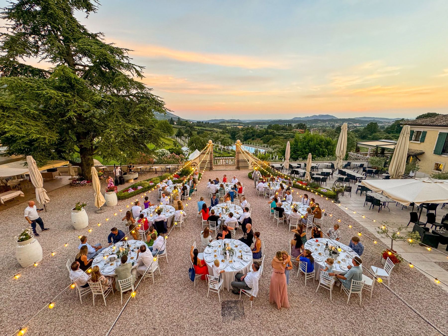 Darüber hinaus können Braut und Bräutigam sowie ihre Gäste vor und nach der Veranstaltung in den Hotelzimmern übernachten und für eine wirklich exklusive Hochzeit die gesamte Villa buchen.