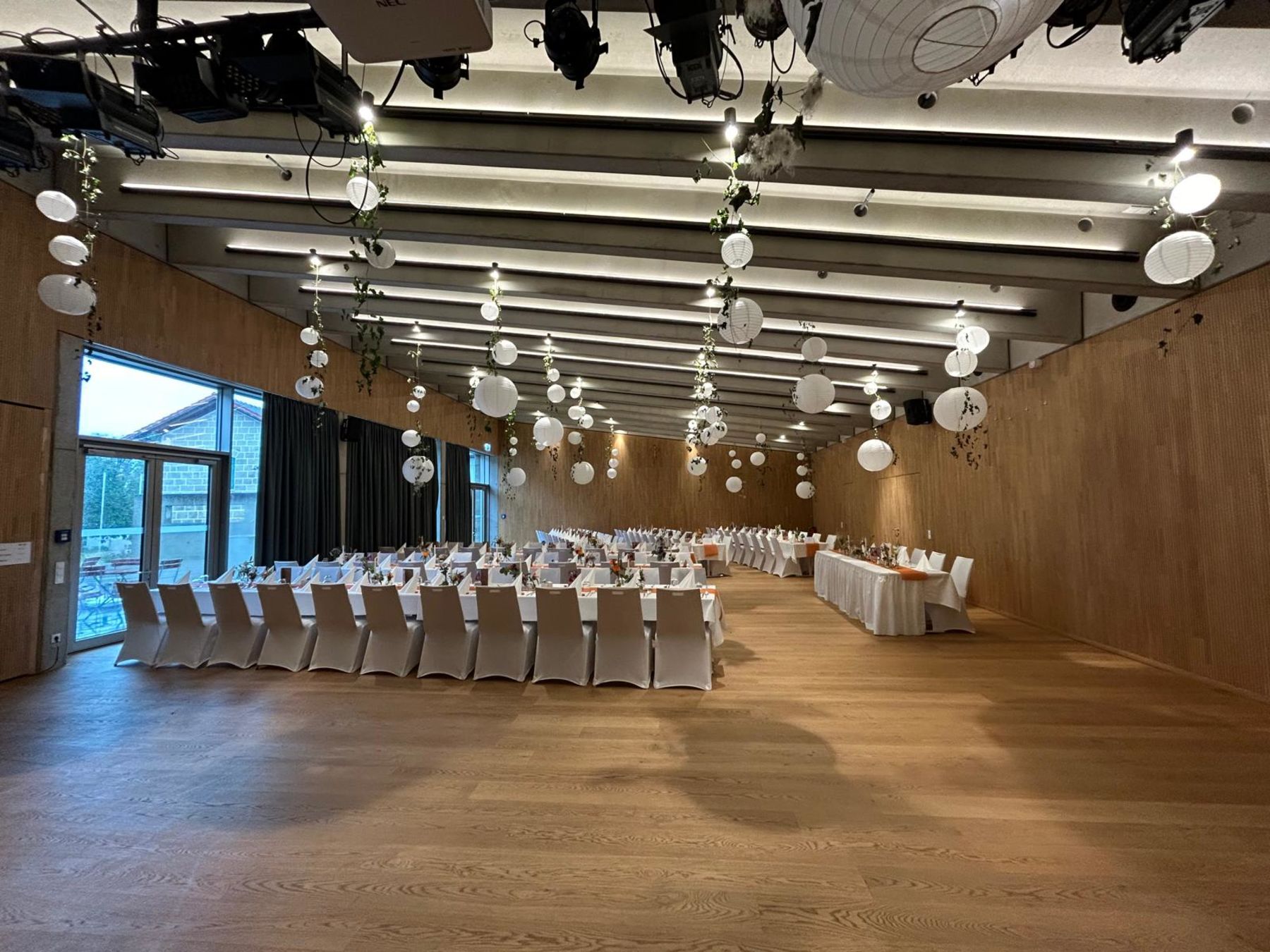Wir haben vor kurzem unsere Hochzeit in dieser wunderschön modernen Location gefeiert und könnten nicht zufriedener sein. Der Raum bietet eine beeindruckende Atmosphäre, die perfekt für unsere 130 Gäste war. Die stilvolle Einrichtung hat für eine unvergessliche Stimmung gesorgt.