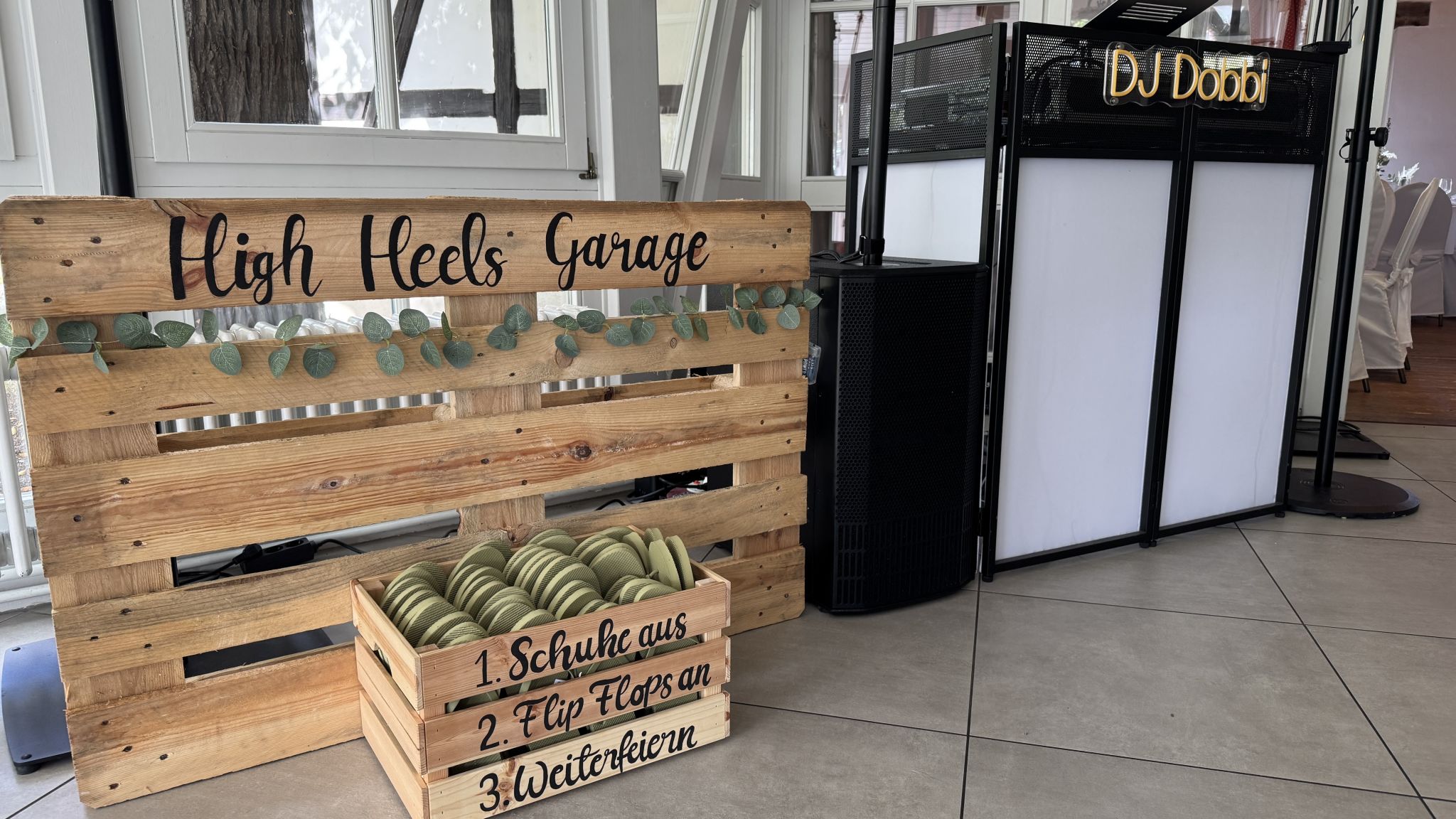 - Hochwertiges Sound- und Lichteqipment inklusive DJ Tisch (beleuchtet) und Funk Mikrofon
